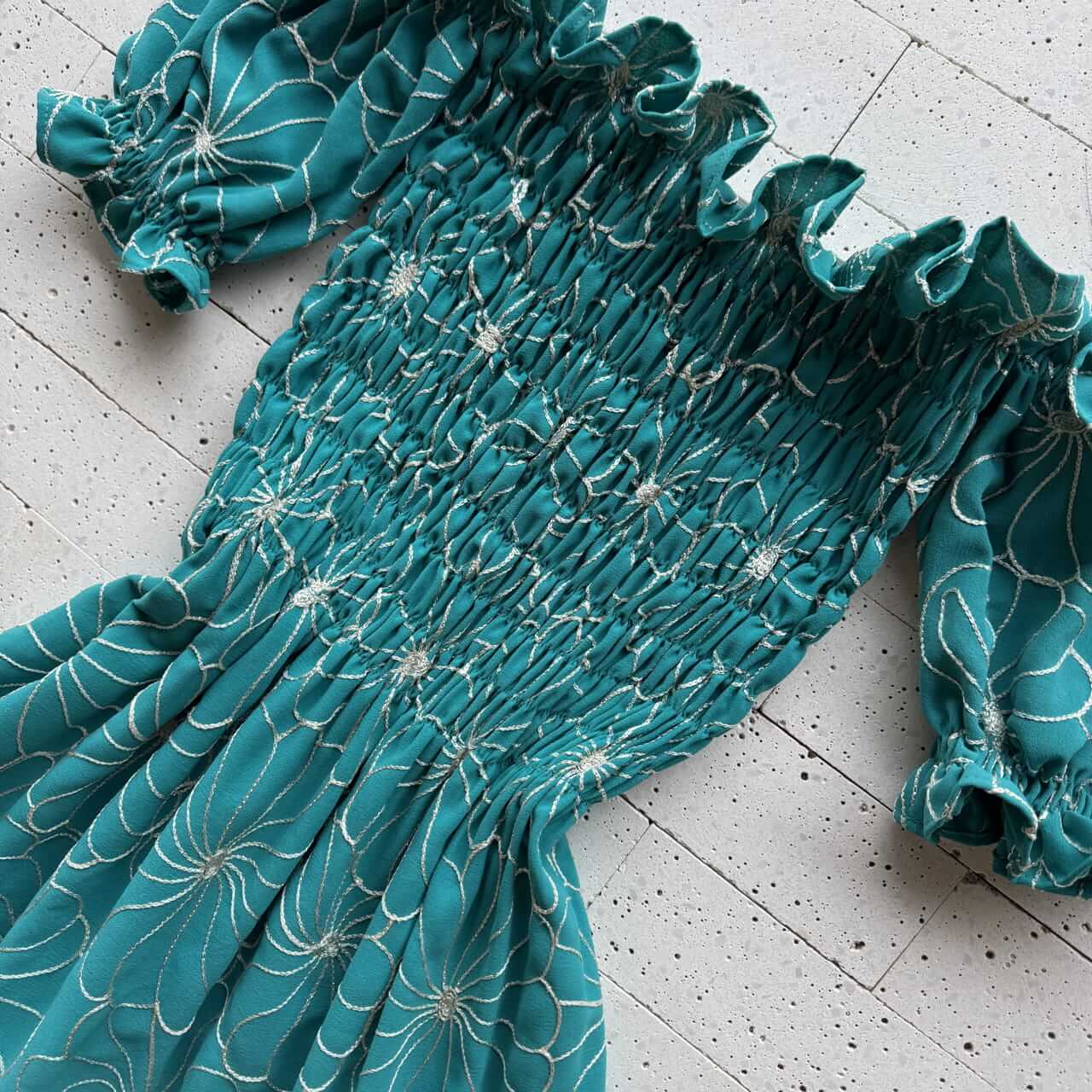 • Bordados florais por toda a peça, com acabamento minucioso.