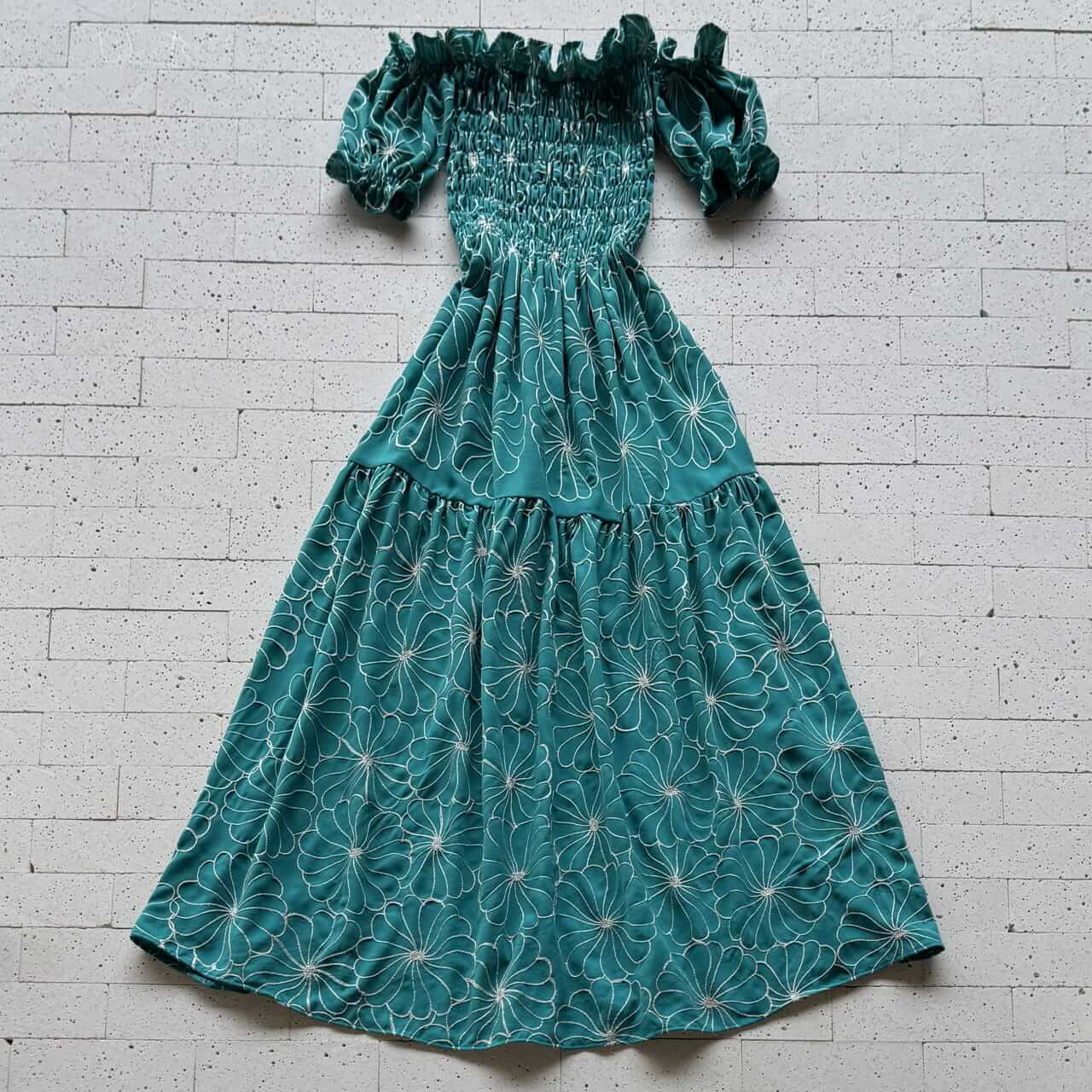 O Vestido Longo Ciganinha Bordado e Busto Lastex Turquesa combina romantismo, conforto e sofisticação em uma única peça. O modelo destaca-se pelo busto em lastex que se ajusta perfeitamente ao corpo, oferecendo sustentação e caimento impecável. A gola em estilo ciganinha com babados delicados valoriza os ombros, enquanto as mangas curtas levemente bufantes trazem ainda mais feminilidade. A saia longa com recorte e volume leve recebe bordados florais marcantes, que conferem um charme artesanal ao visual. Ideal para momentos especiais, é uma peça que une estilo e conforto com muita delicadeza.