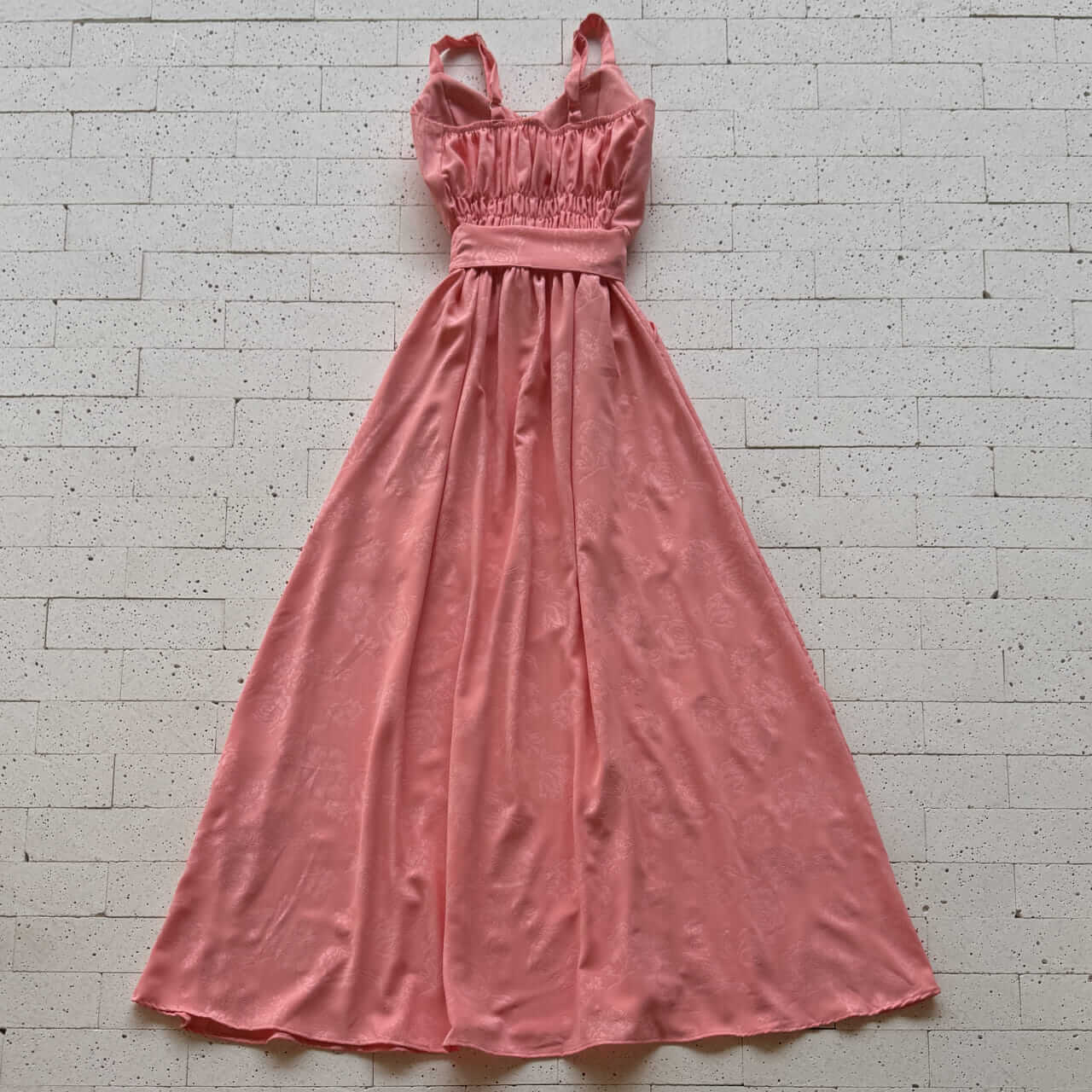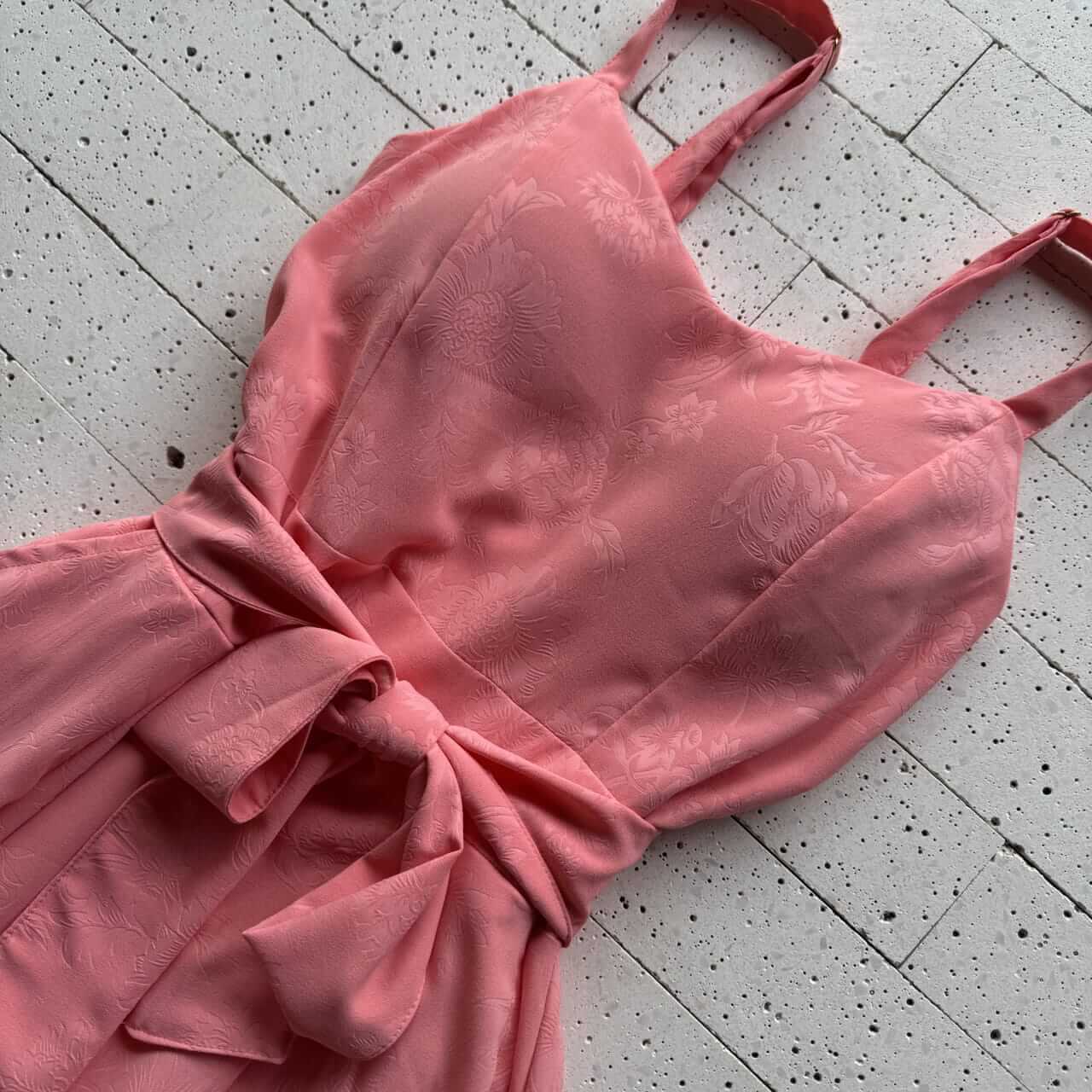 VESTIDO LONGO DETALHADO ALCINHA E AMARRAÇÃO FIXA GOIABA – Elegância Romântica e Caimento Fluido