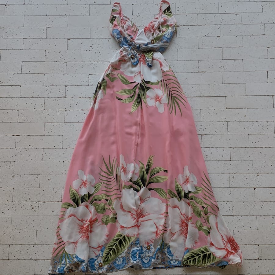 Como usar seu Vestido Longo Estampado com Amarração nas Costas Rosa