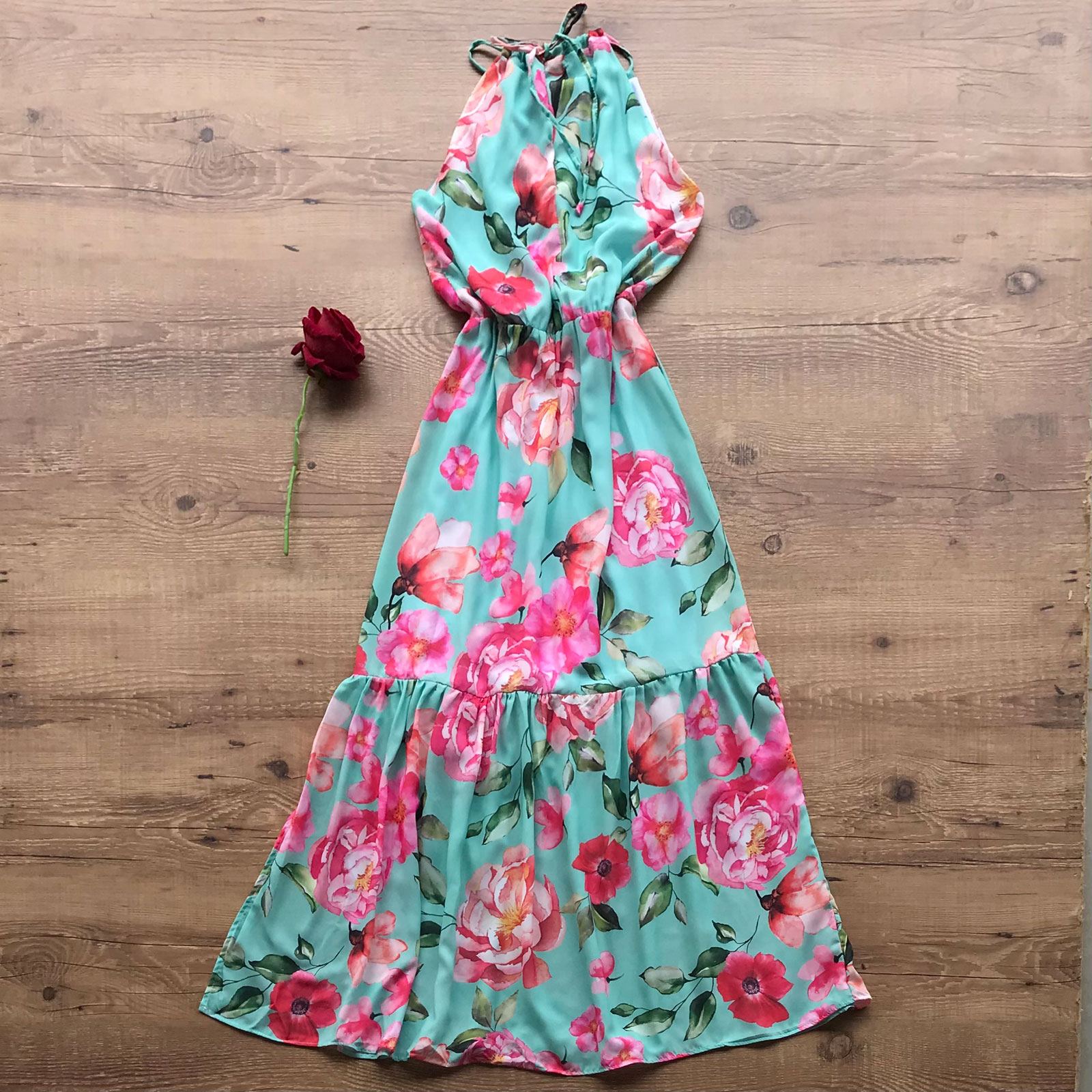 Como usar seu Vestido Longo Floral Elástico Na Cintura Menta
