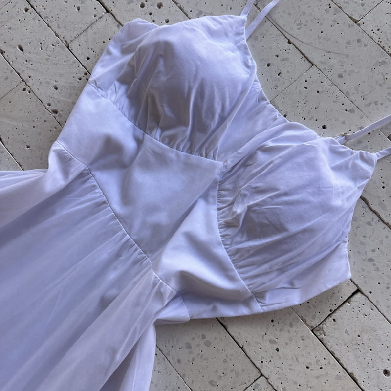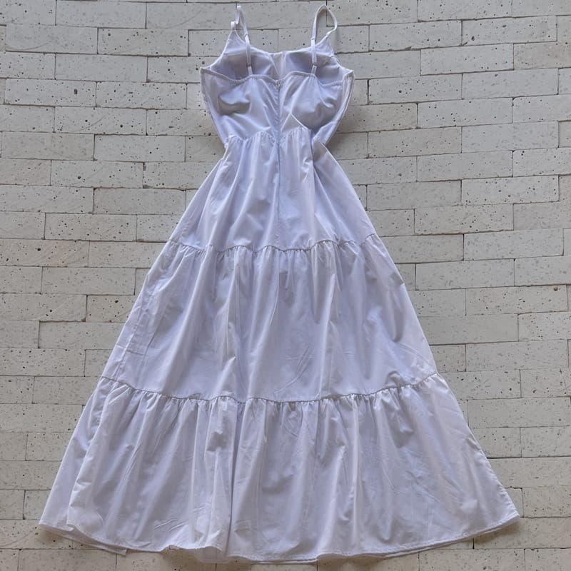 Escolha seu Vestido Longo Tricoline com Fenda e Bojo Off com nosso PROVADOR VIRTUAL
