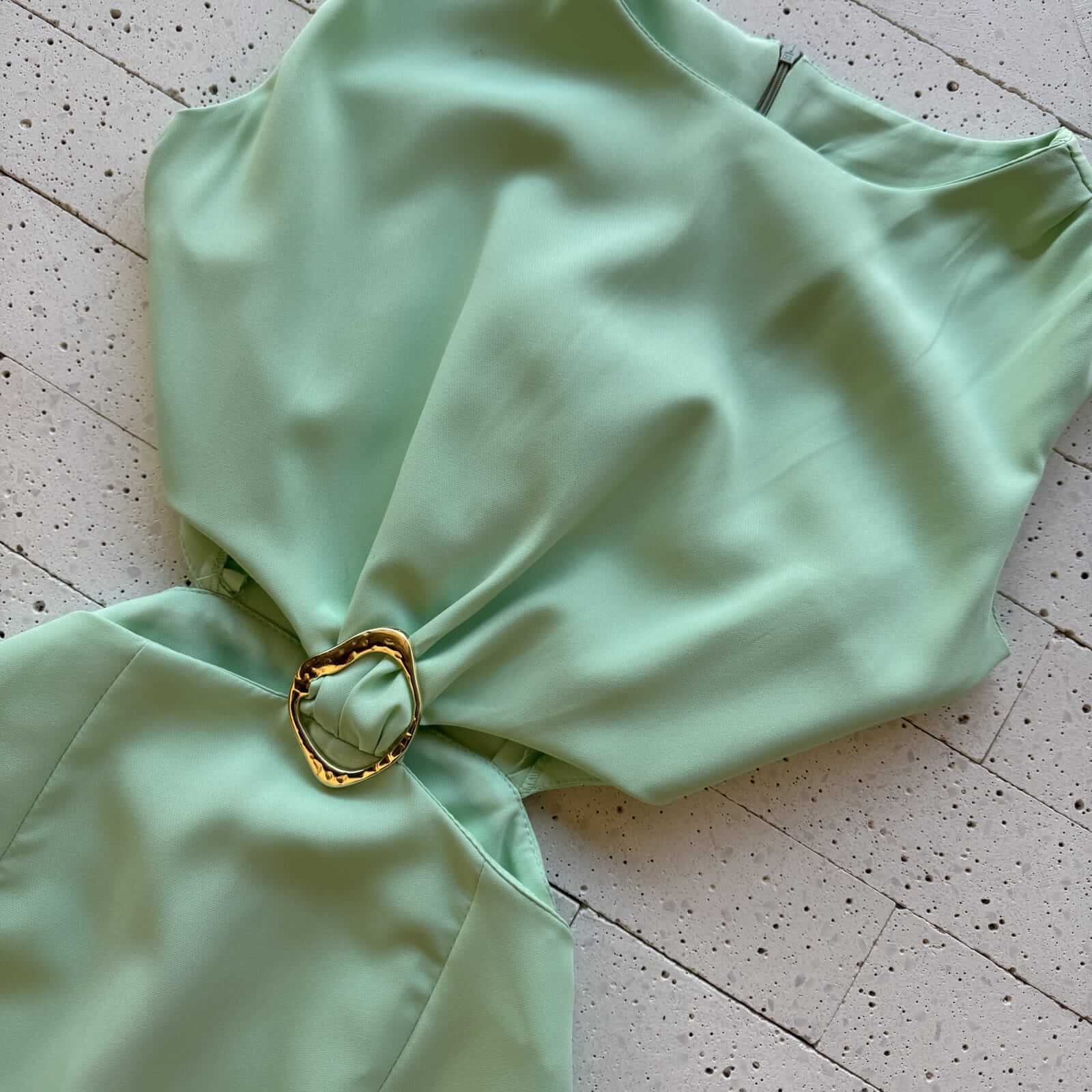 VESTIDO LONGUETE ALFAIATARIA COM ABERTURA E FIVELA NA CINTURA MENTA – Elegância e Modernidade