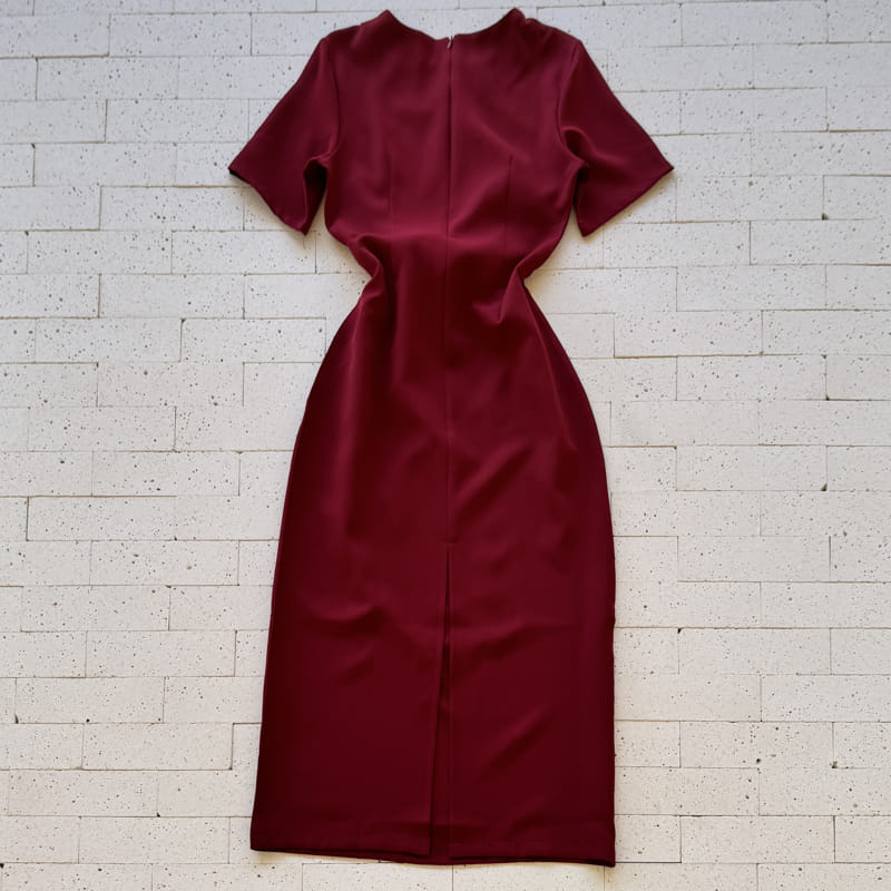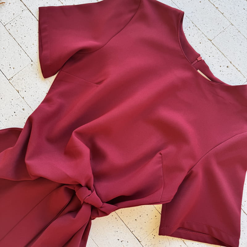 VESTIDO LONGUETE ALFAIATARIA COM NÓZINHO NA CINTURA MARSALA