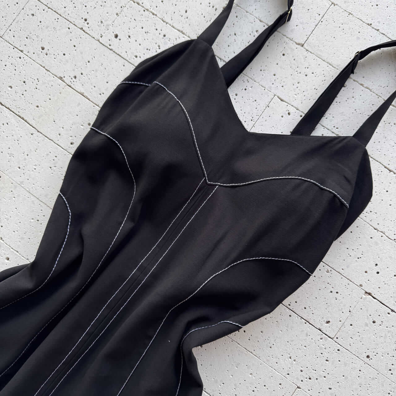 Vestido Longuete Marrant Pespontado Preto – Elegância Atemporal com Caimento Premium