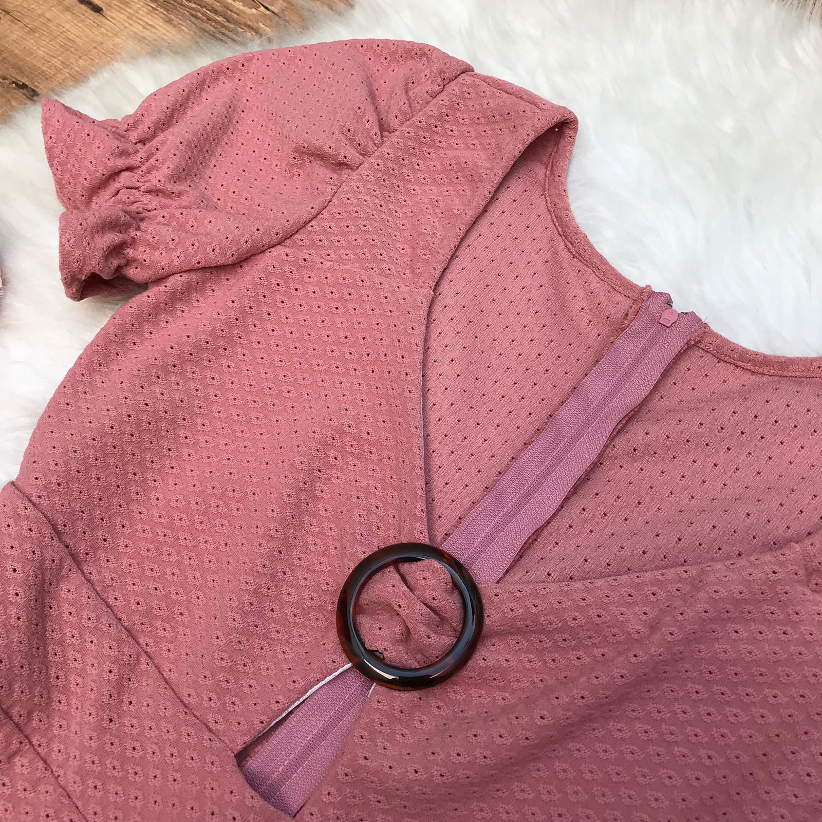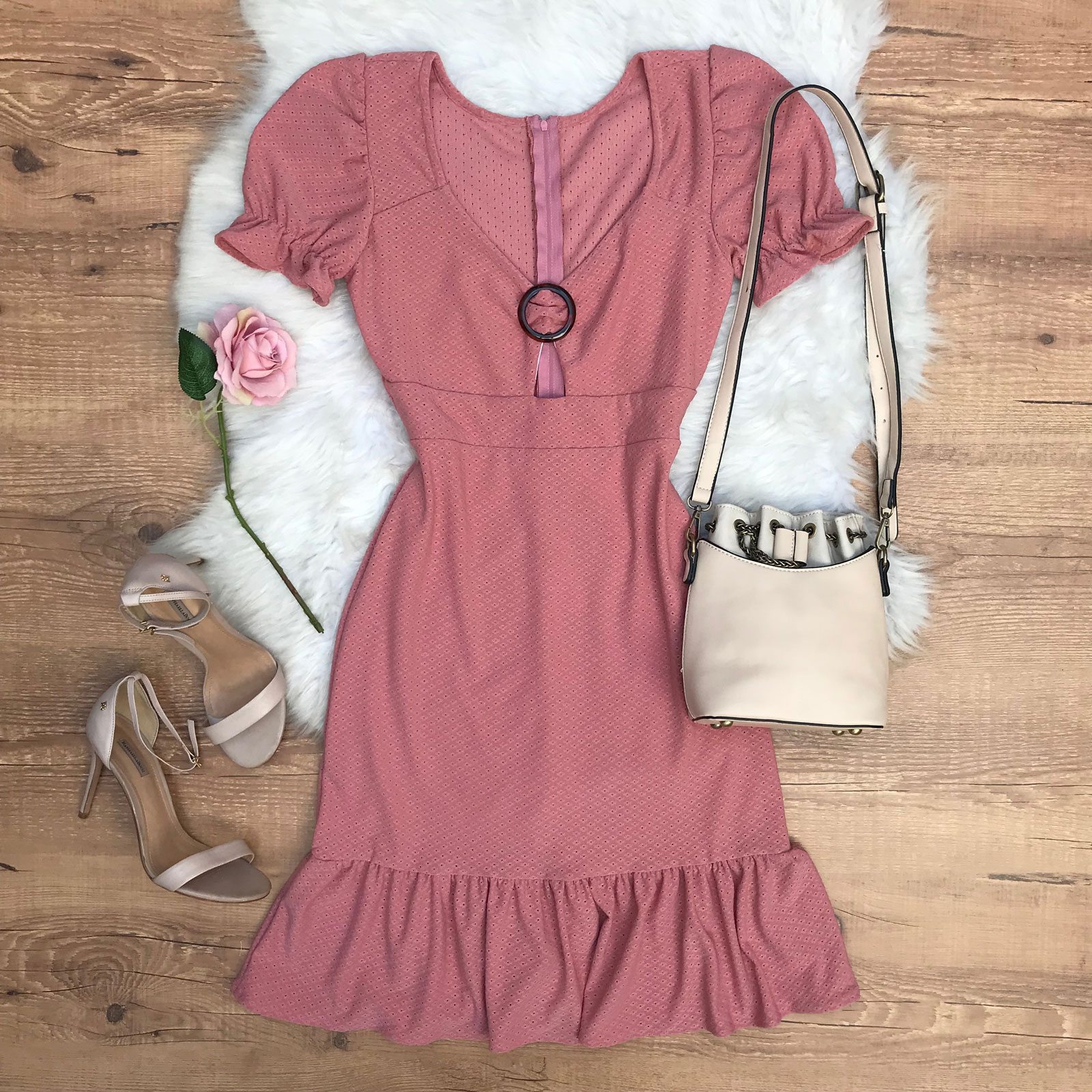 VESTIDO MALHA LAISE FIVELA NO DECOTE ROSA QUEIMADO