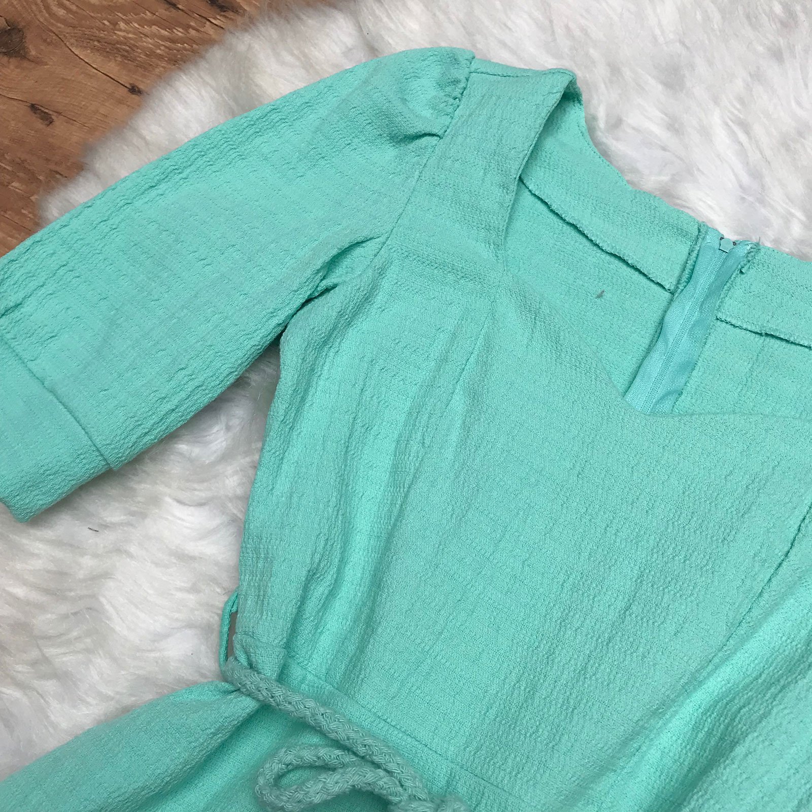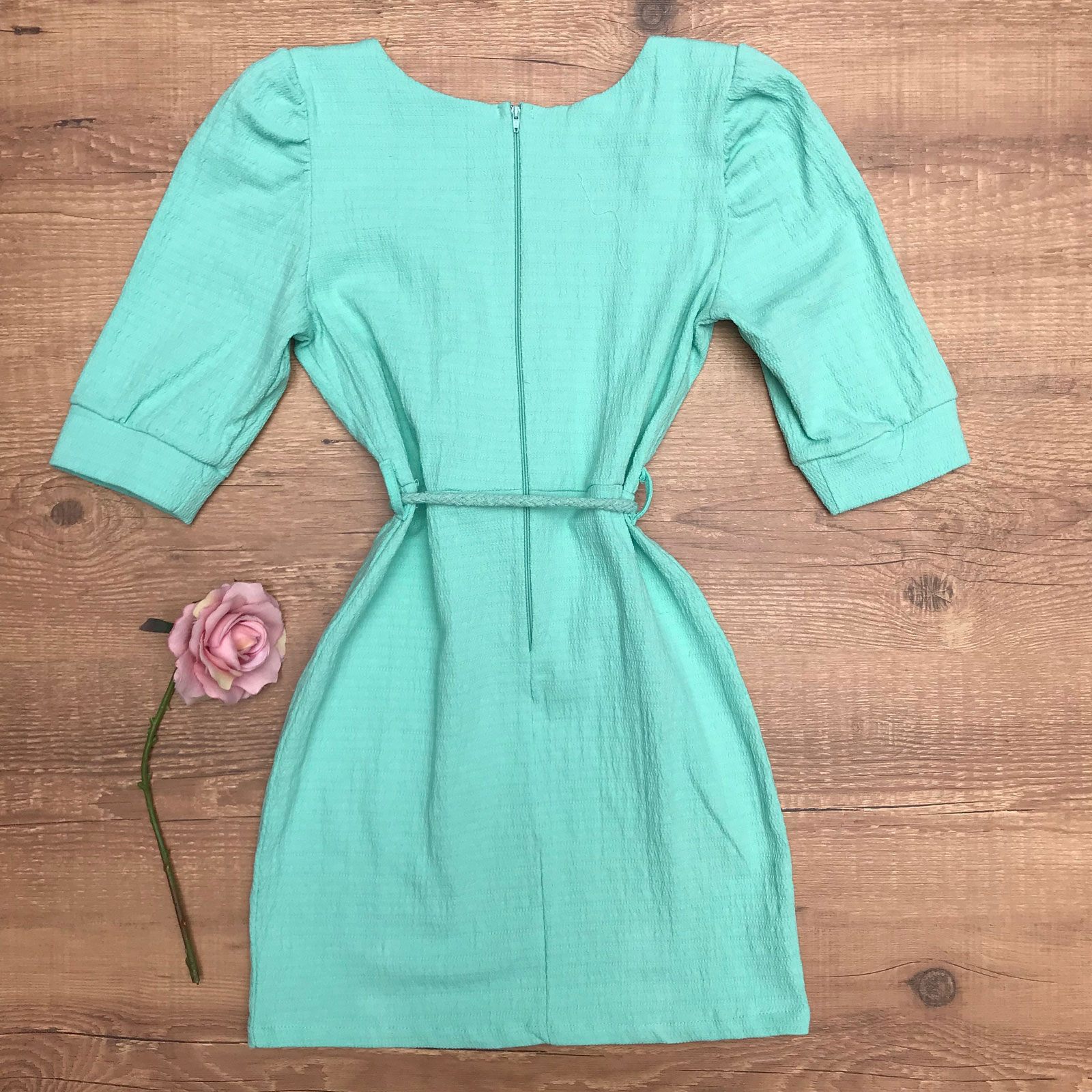 VESTIDO MANGA PRINCESA COM CINTO CORDÃO MENTA
