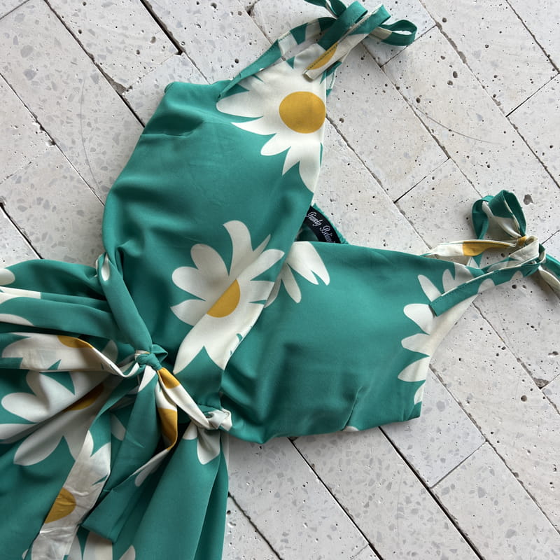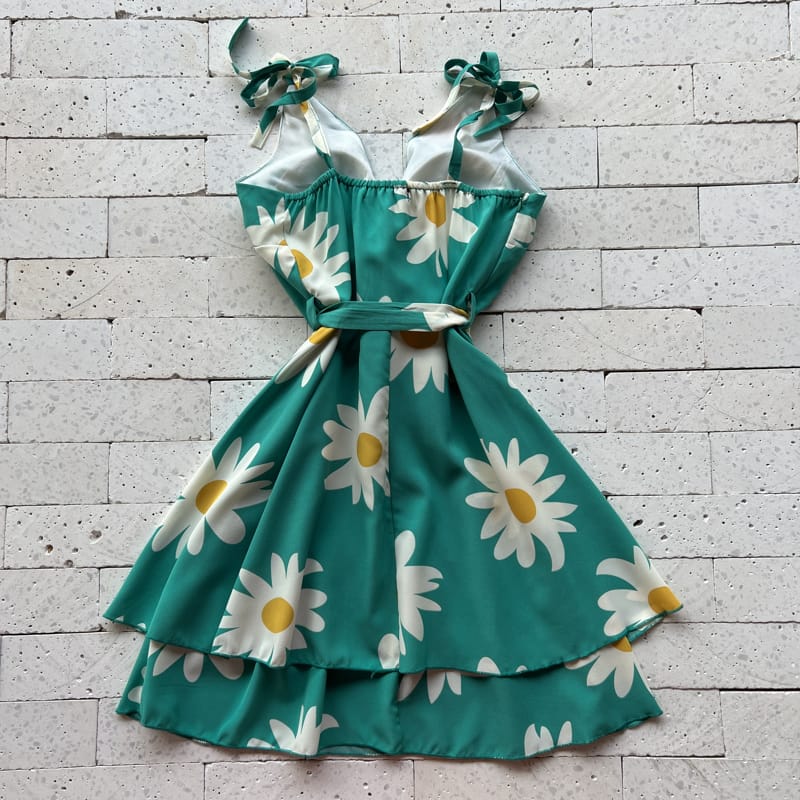 VESTIDO MARGARIDAS ALÇA LACINHO VERDE