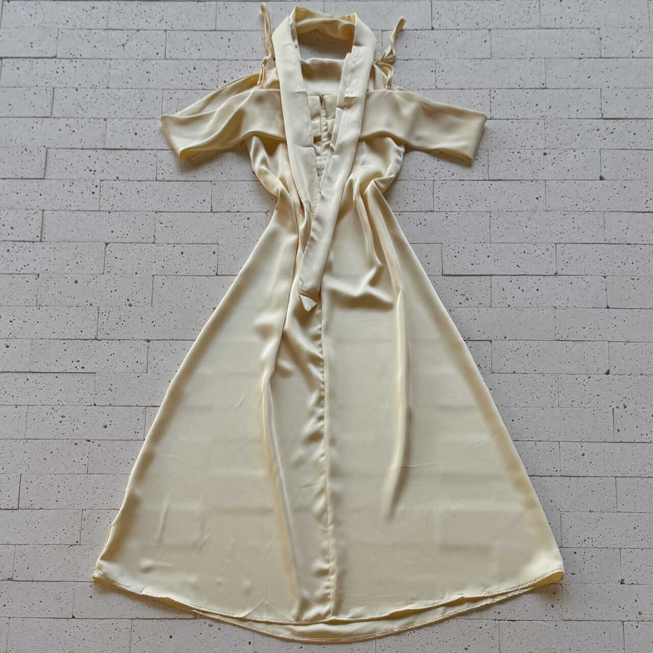 Dondoca_com_br Vestido Midi Acetinado Com Lenco No Pescoco Amarelo