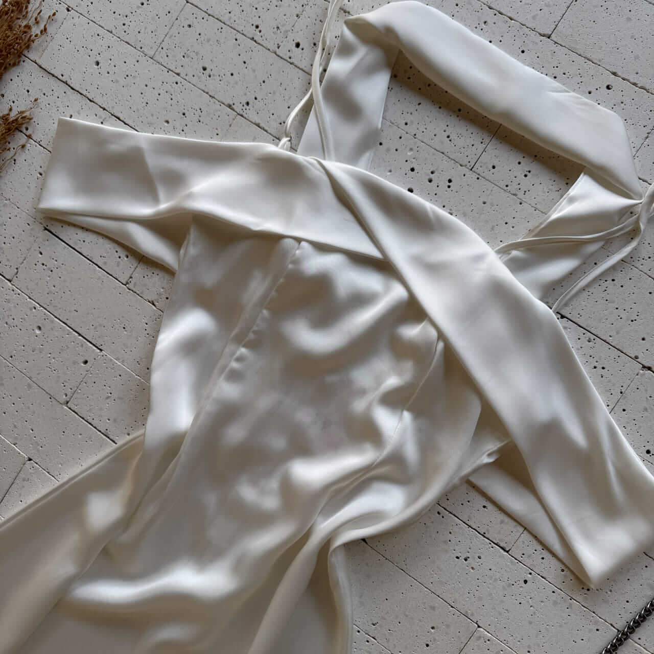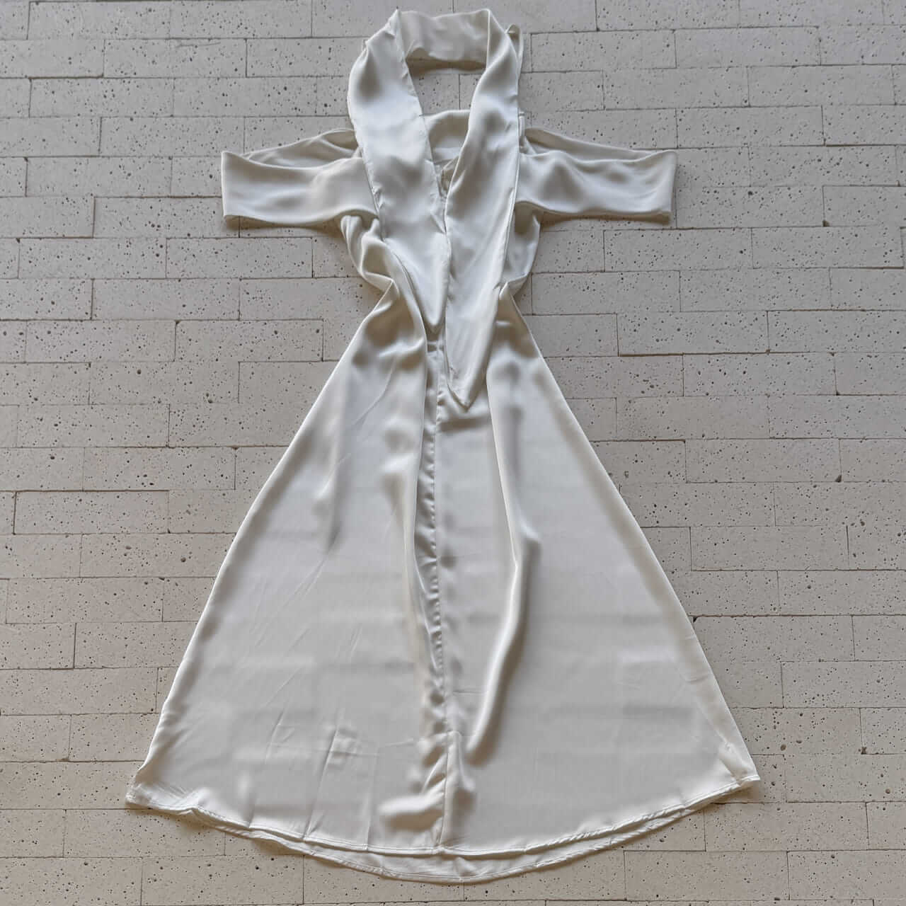 VESTIDO MIDI ACETINADO COM LENÇO NO PESCOÇO OFF