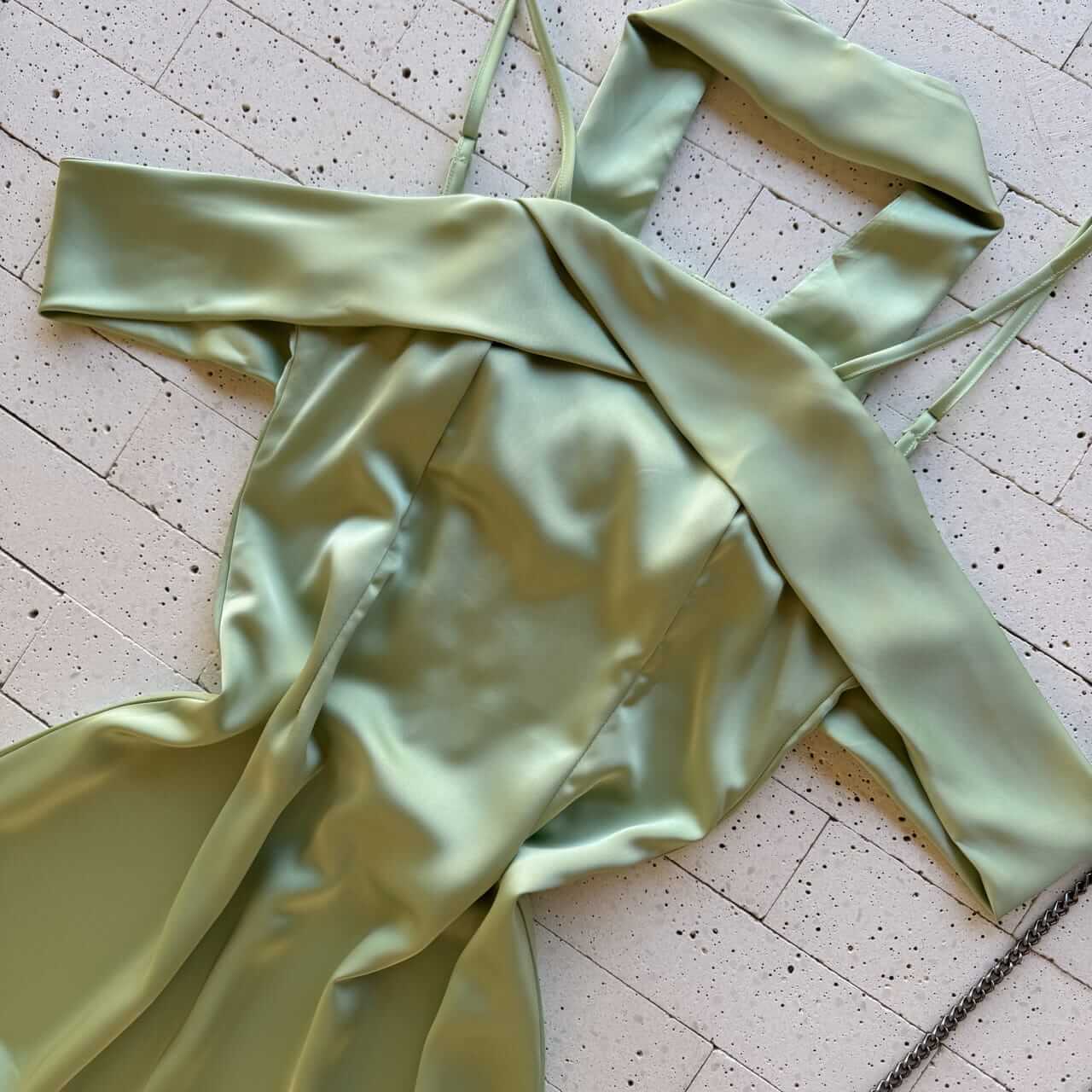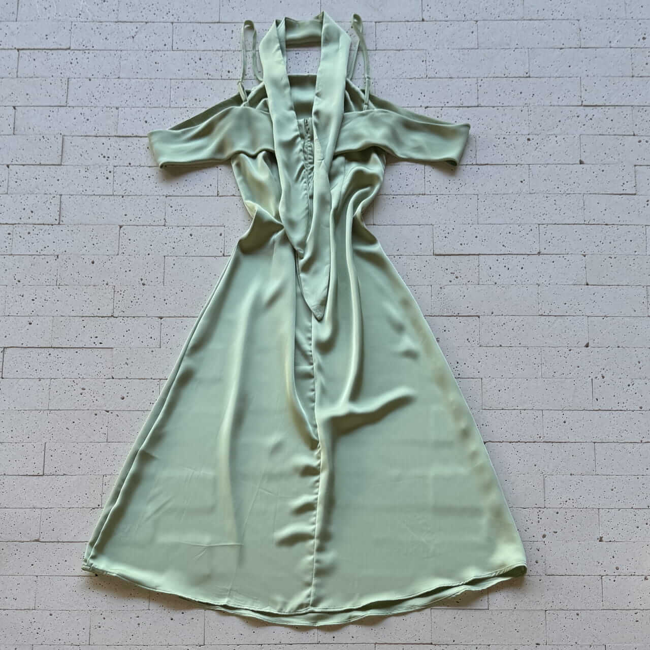 VESTIDO MIDI ACETINADO COM LENÇO NO PESCOÇO VERDE