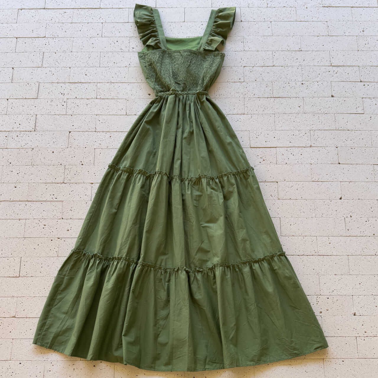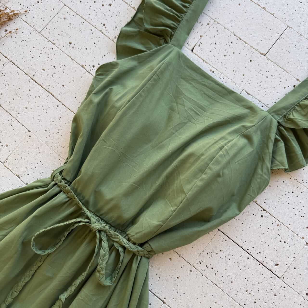 VESTIDO MIDI ALÇA BABADOS E CINTO TRANÇADO VERDE OLIVA