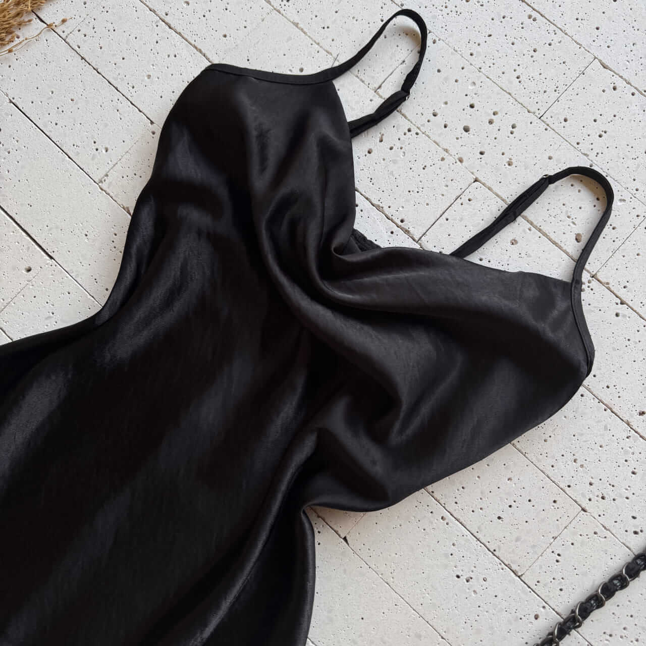 VESTIDO MIDI ALCINHA ACETINADO PRETO