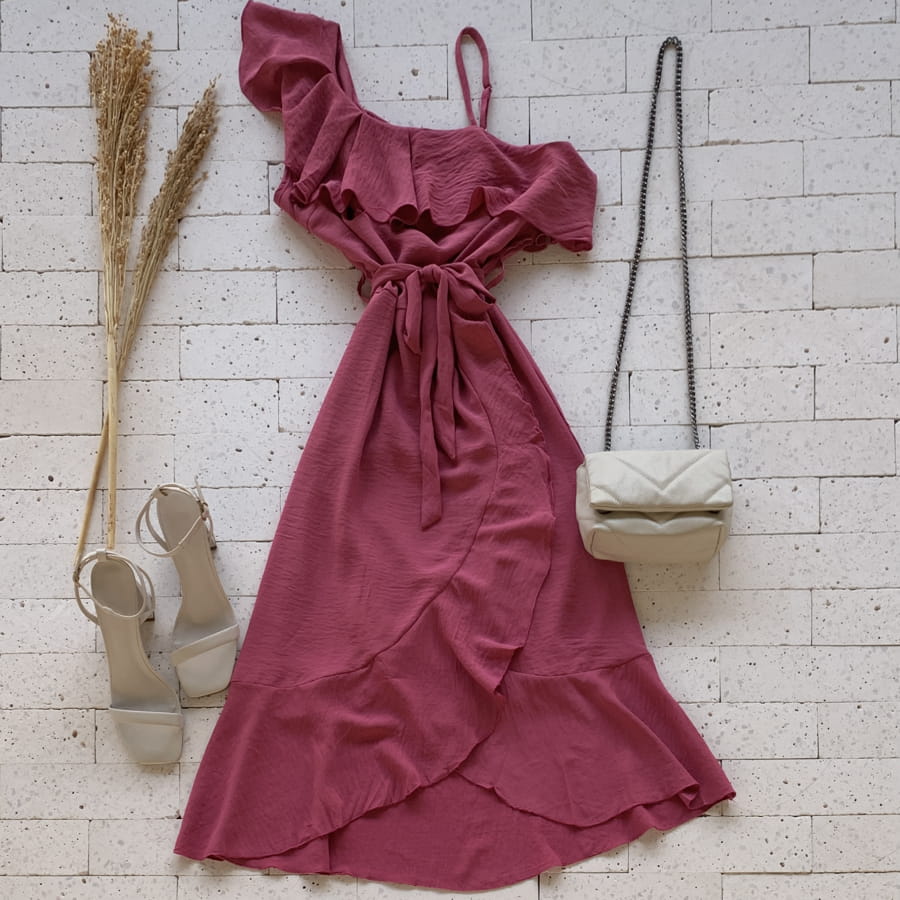 Como usar seu Vestido Midi Babados e Amarração Goiaba