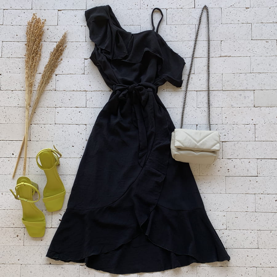 Como usar seu Vestido Midi Babados e Amarração Preto