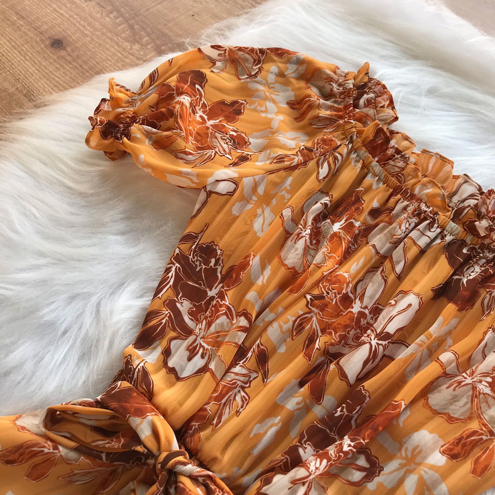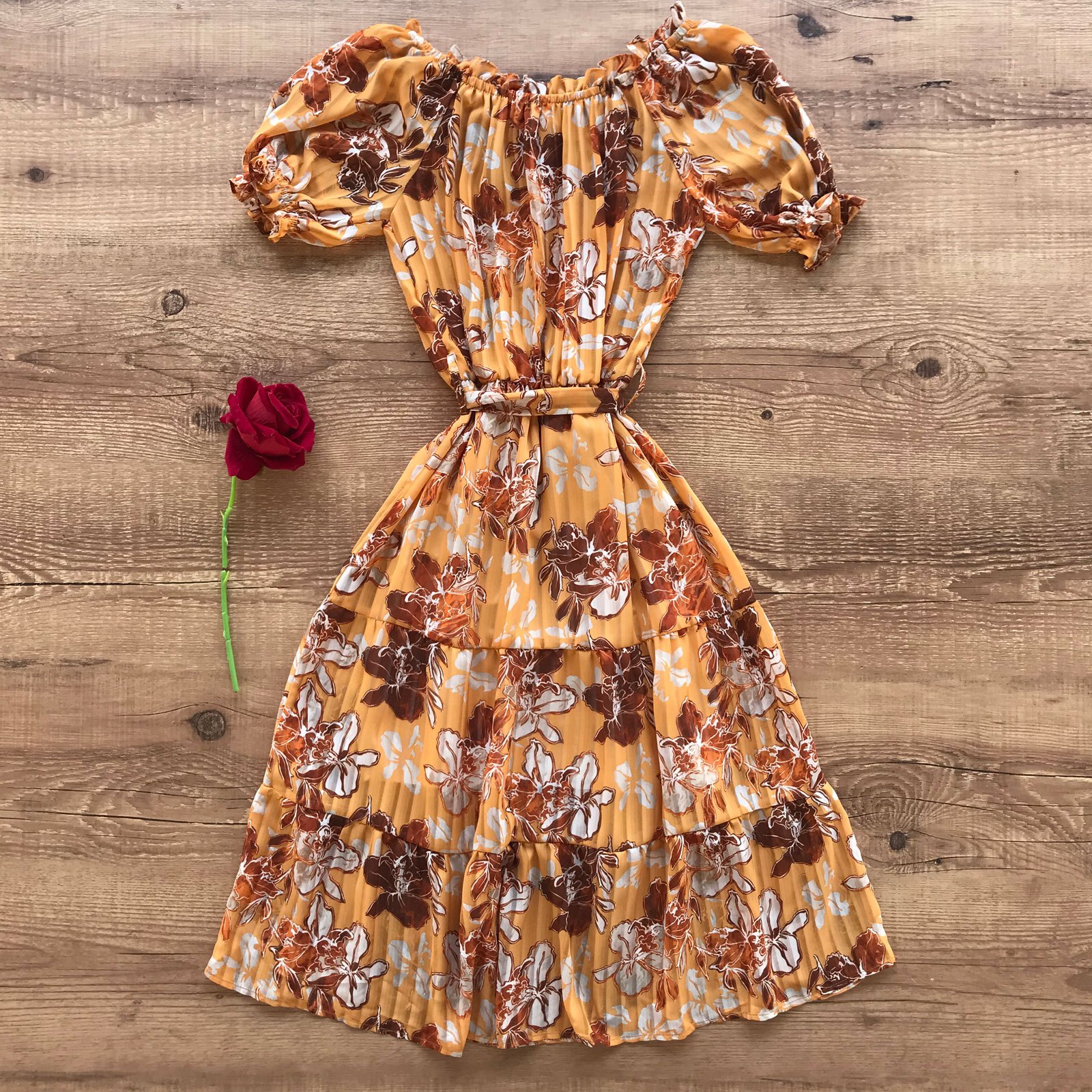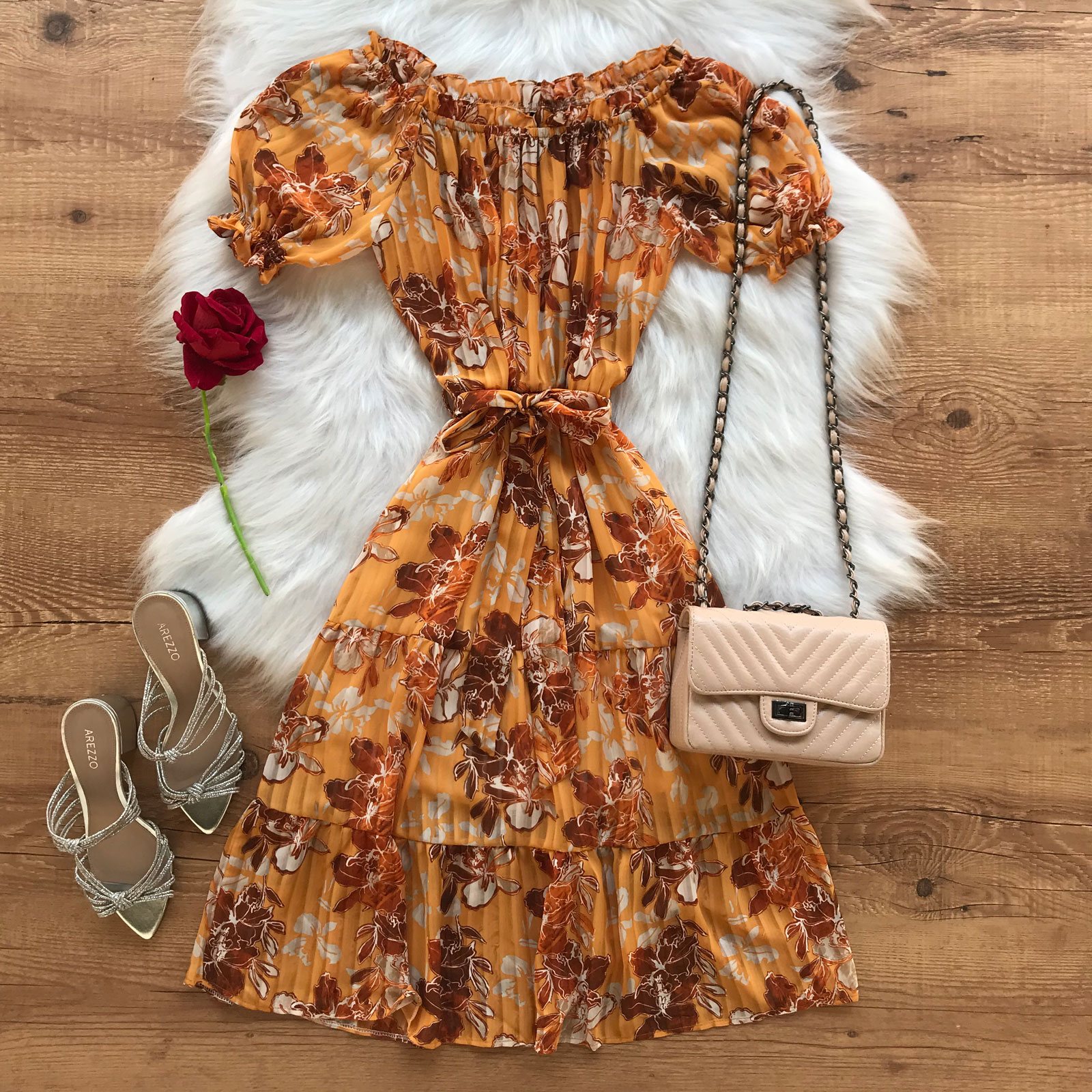 Como usar seu Vestido Midi Chiffon Ciganinha Mostarda