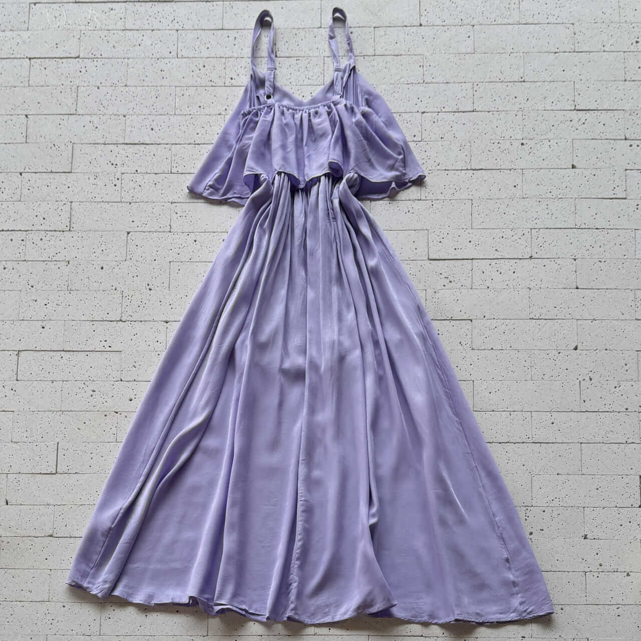VESTIDO MIDI COM BABADO NO BUSTO LAVANDA – Delicadeza e Fluidez em Cada Detalhe