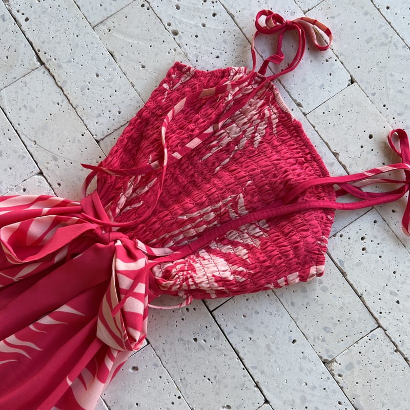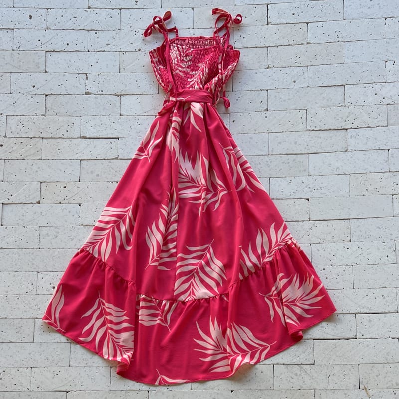 VESTIDO MIDI ESTAMPA FOLHAGEM MULLET PINK