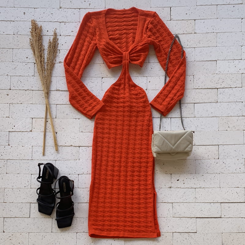 Vestido Midi Modal Manga Longa com Abertura Luxo Laranja – Dondoca