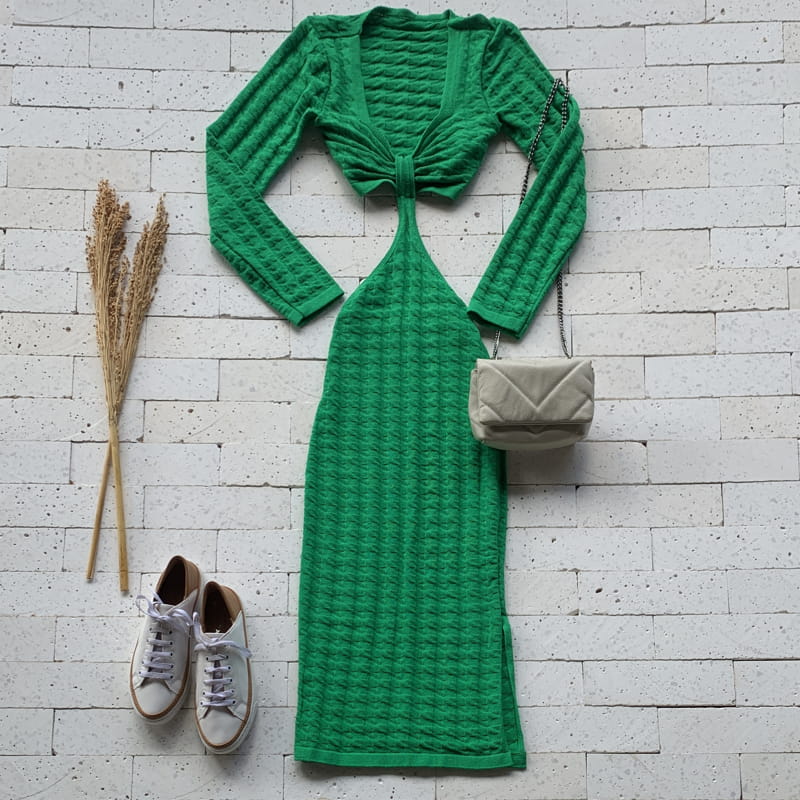 Vestido Midi Modal Manga Longa com Abertura Luxo Verde – Dondoca