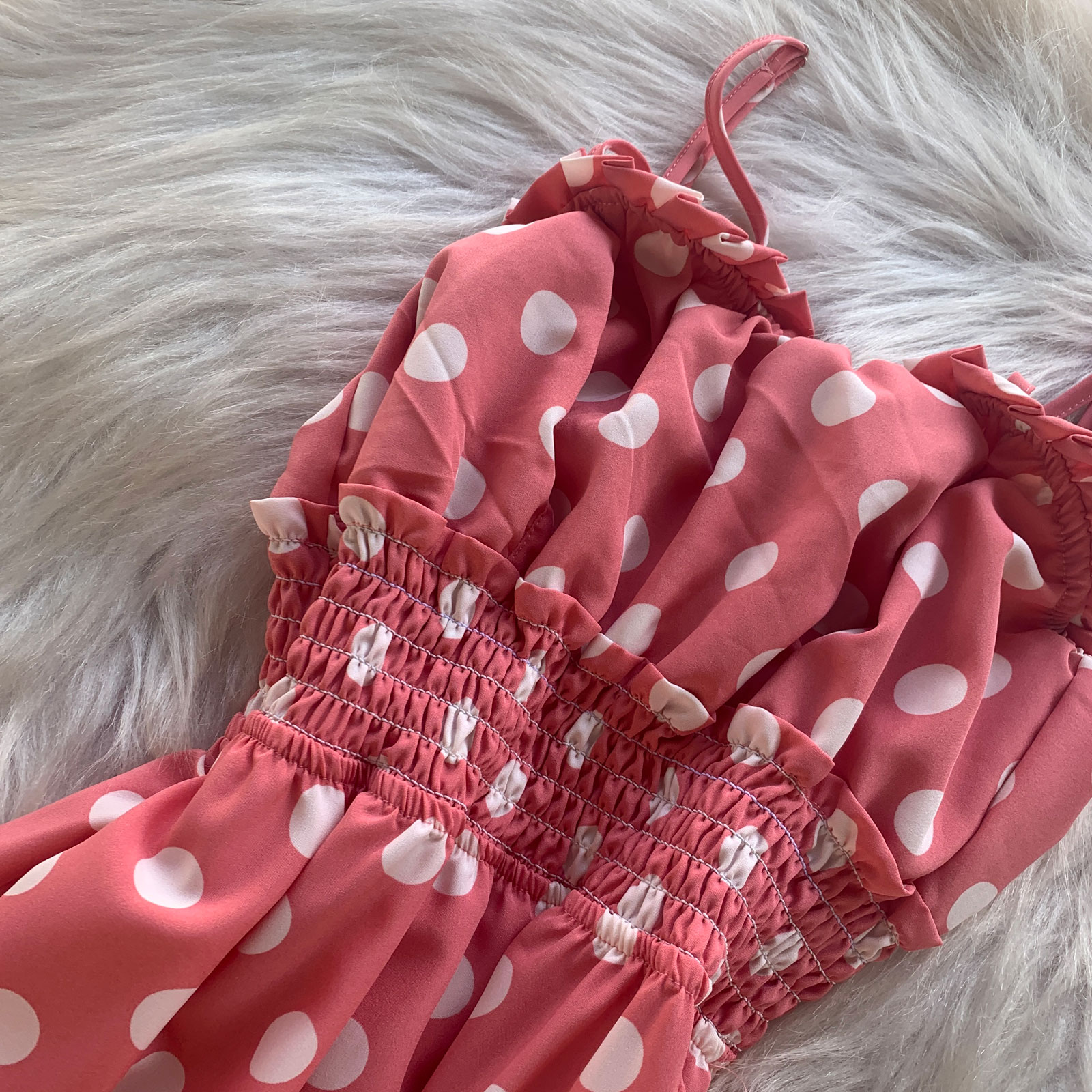 VESTIDO MIDI POÁ CINTURA LASTEX GOIABA