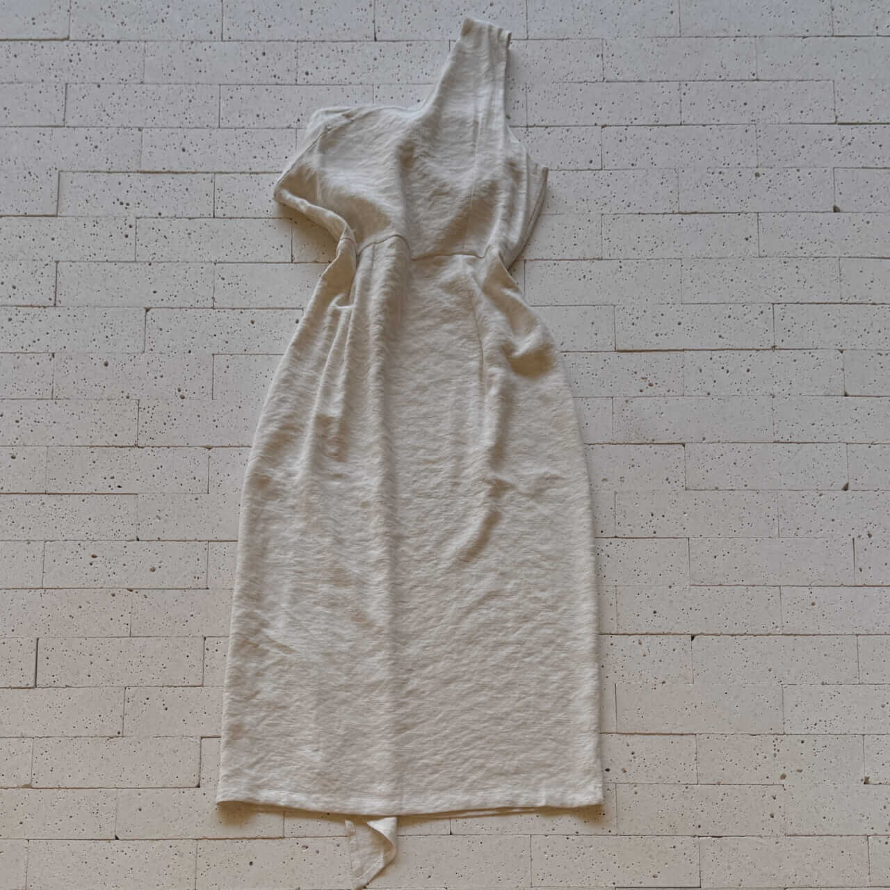 VESTIDO MIDI UM OMBRO SÓ DETALHE FIVELA CRU