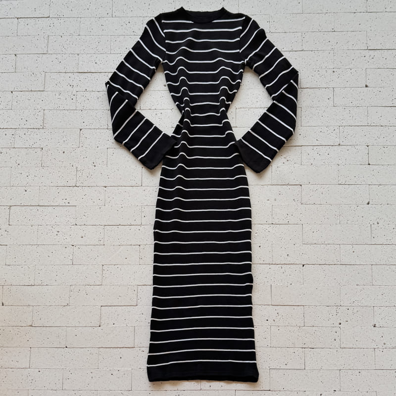 VESTIDO MODAL LISTRADO LONGUETE COM FENDA PRETO – Clássico P&B com Toque Moderno