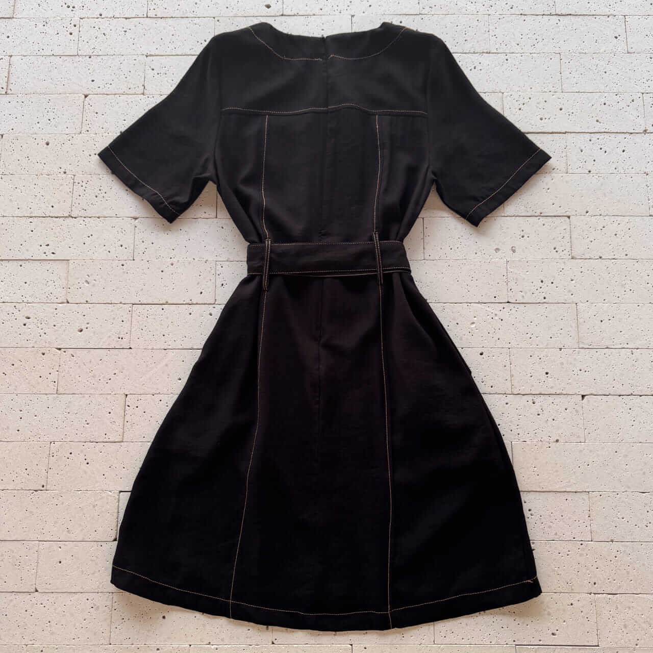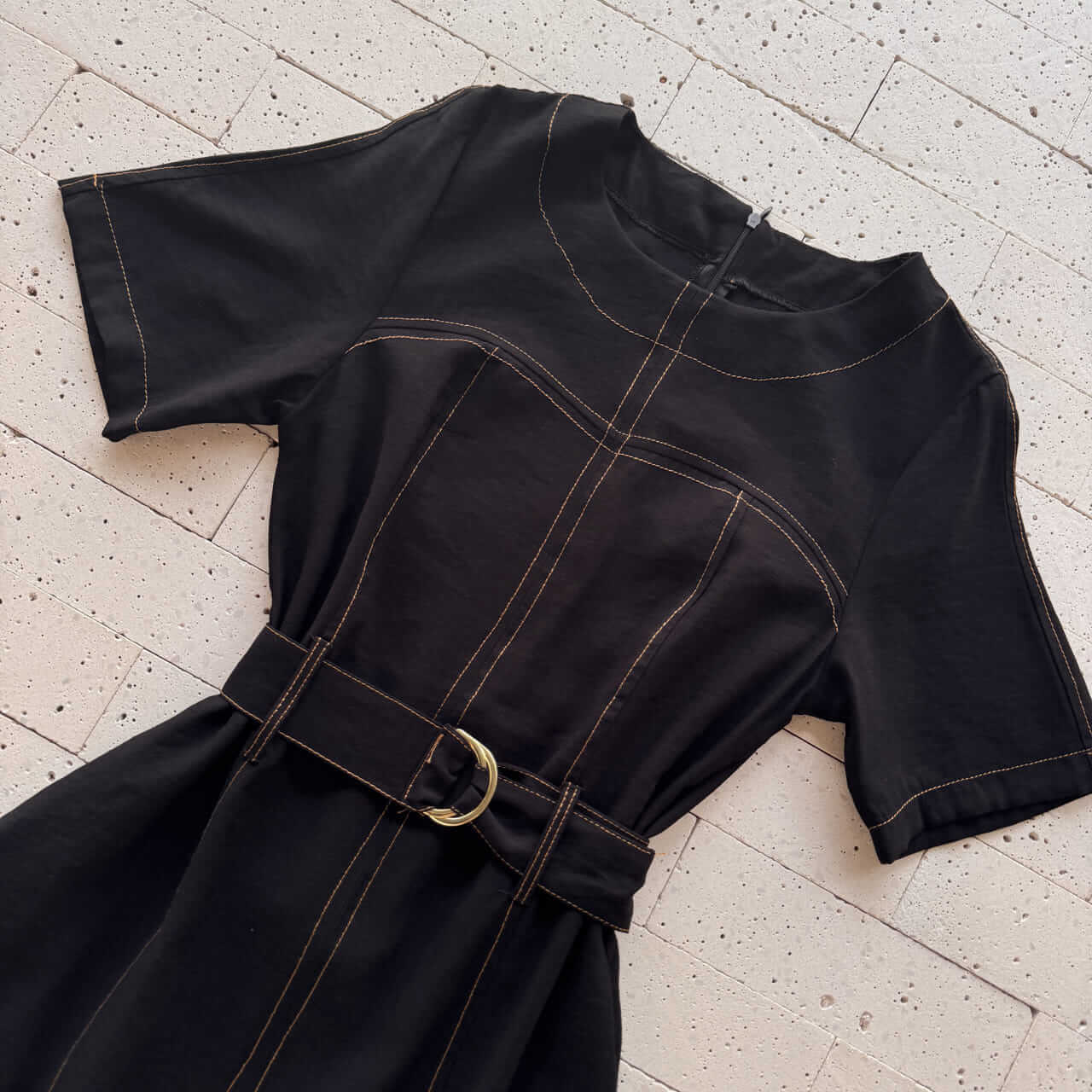 VESTIDO PESPONTADO COM CINTO PRETO – Clássico Estruturado e Elegante
