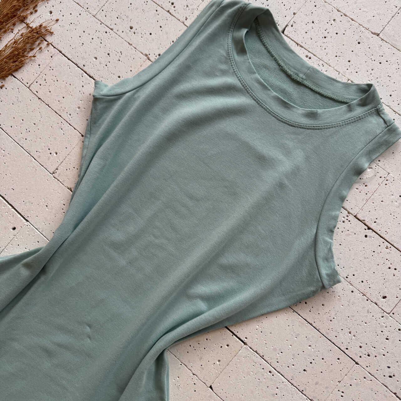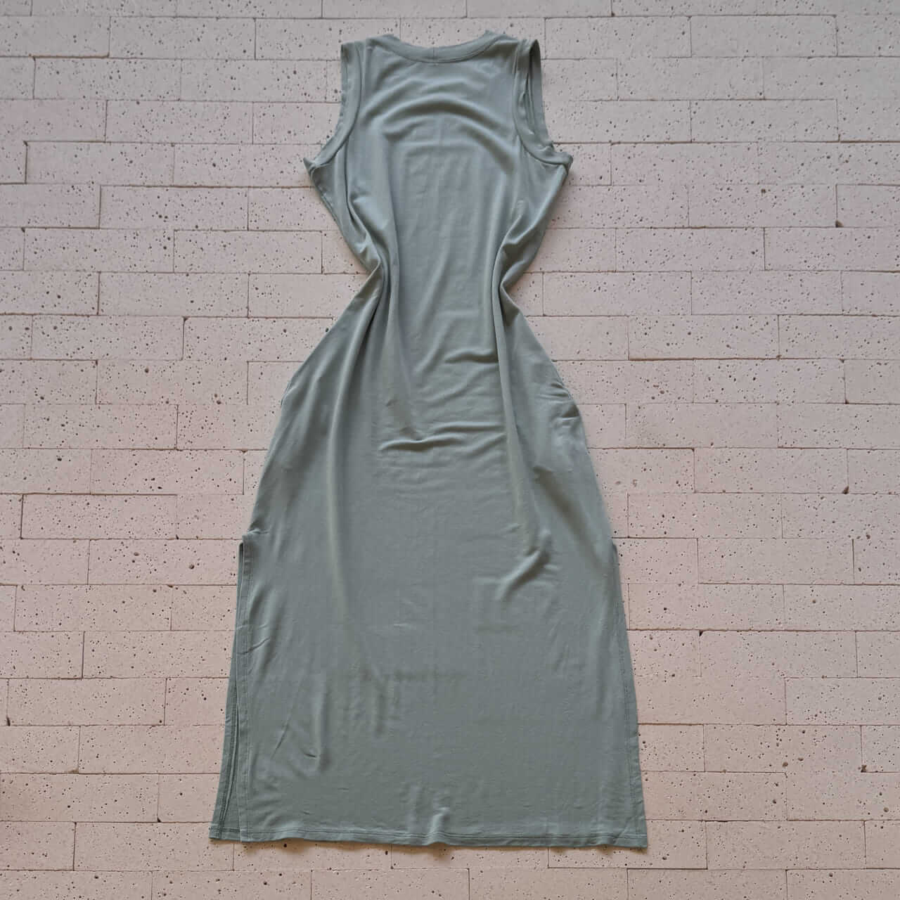 VESTIDO REGATA MIDI MOLETINHO COM BOLSOS E FENDAS MENTA