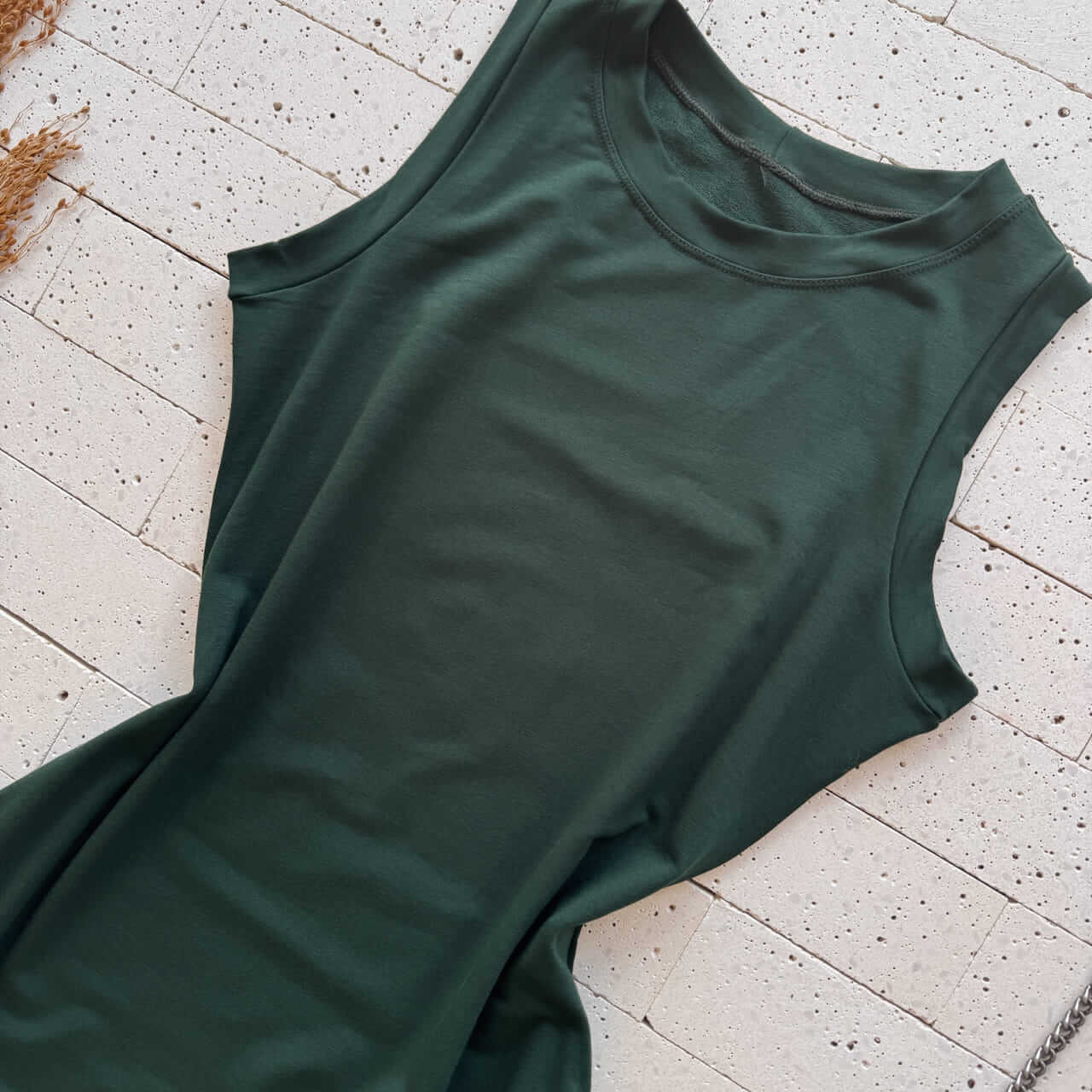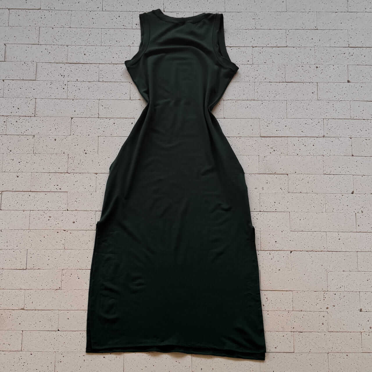 VESTIDO REGATA MIDI MOLETINHO COM BOLSOS E FENDAS VERDE ESCURO