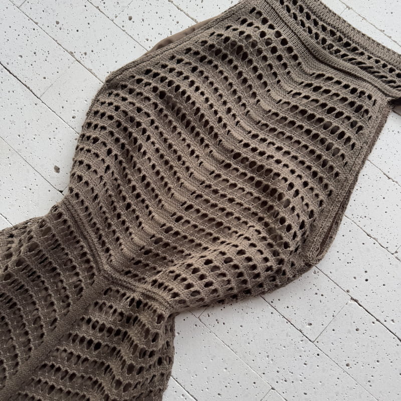 VESTIDO TRICÔ LONGUETE PONTO VAZADO MARROM 2.0 – Elegância e Sofisticação