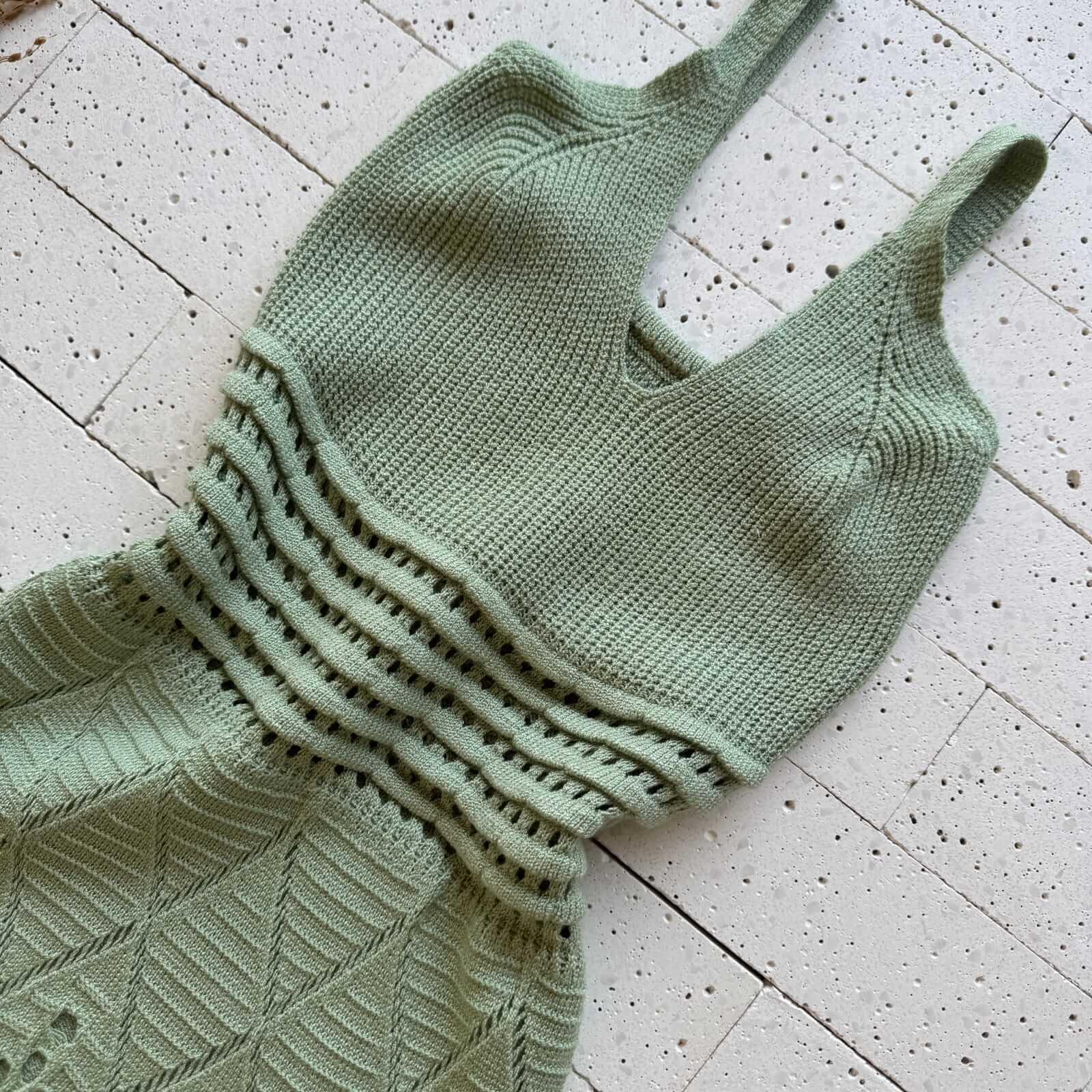Vestido Tricô Longuete Trama Detalhada Pistache – Sofisticação e Textura em Cada Detalhe