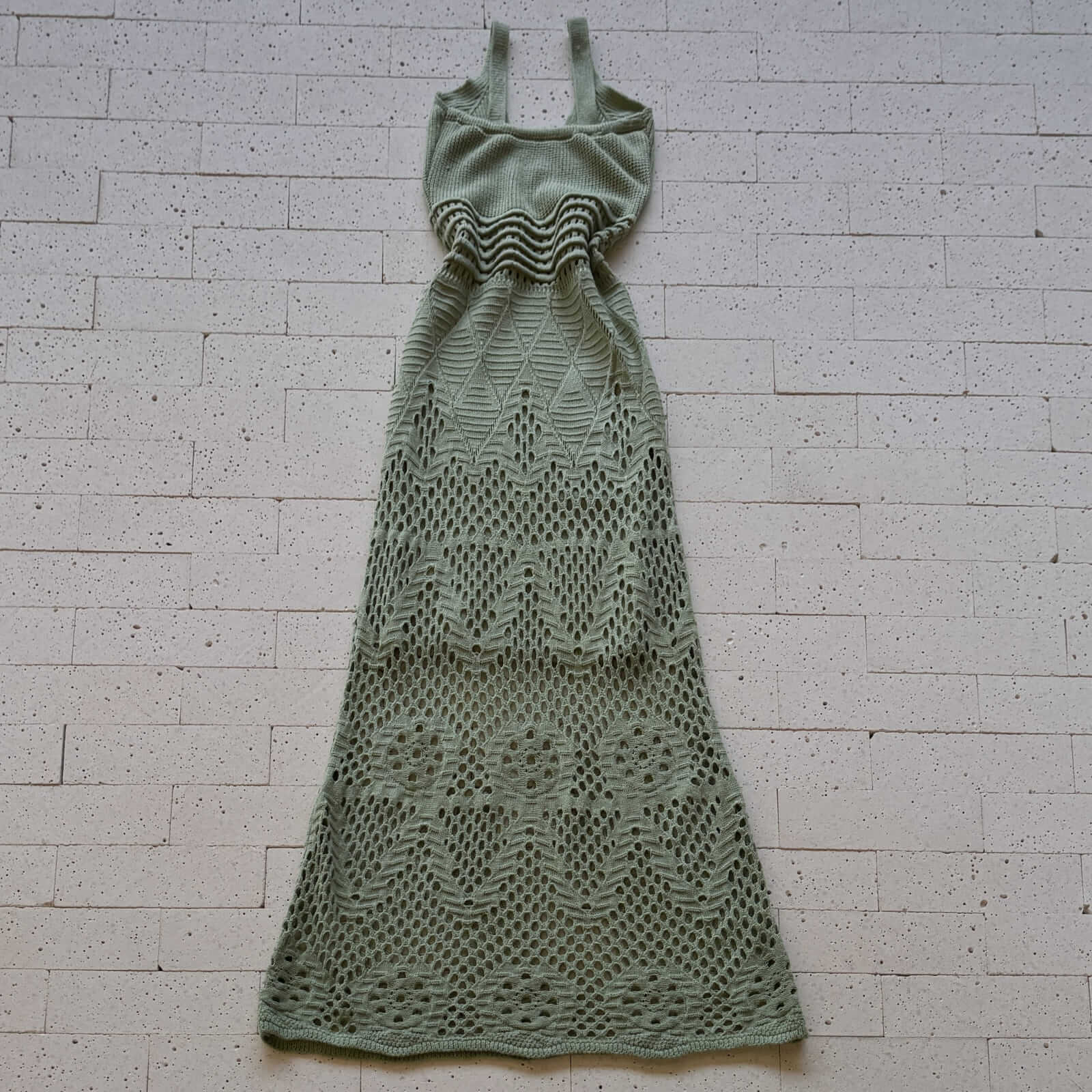 Com design minucioso e trama trabalhada do busto à barra, o Vestido Tricô Longuete Pistache é o toque de elegância que seu guarda-roupa merece. A parte superior com decote em V e alças largas garante sustentação e charme, enquanto a cintura ajustada valoriza a silhueta. O destaque está na rica composição de texturas e desenhos vazados ao longo da saia, criando um visual sofisticado e artesanal. A cor pistache, suave e moderna, combina com produções elegantes e casuais. Ideal para quem busca exclusividade e delicadeza em uma única peça.
