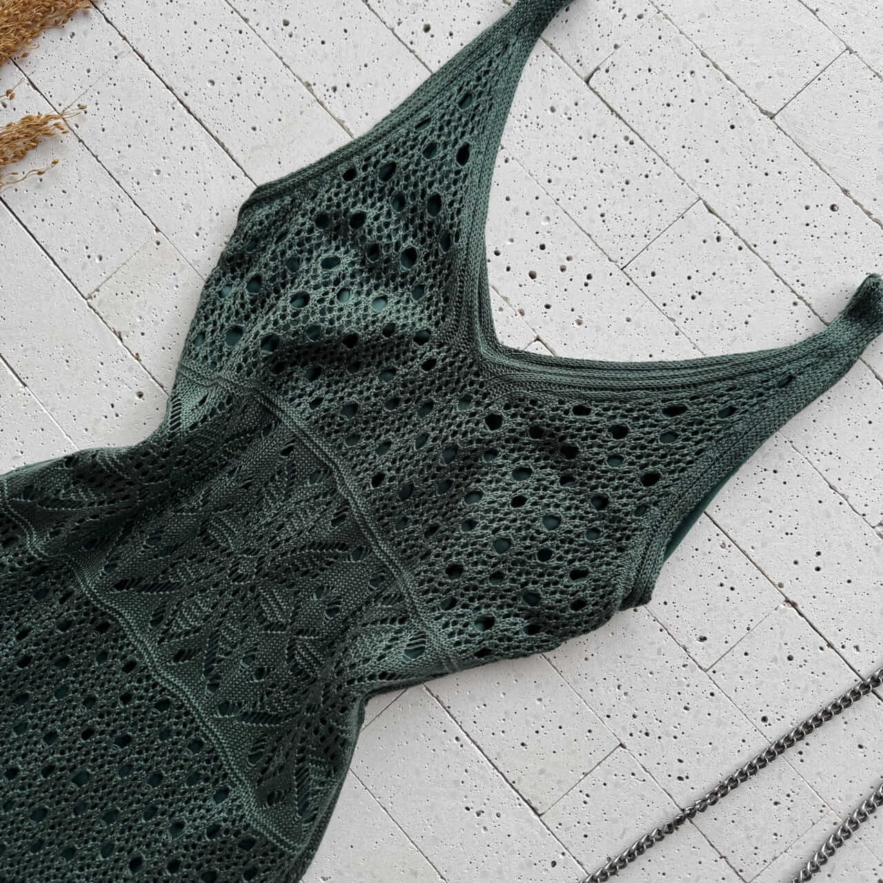 VESTIDO TRICO MIDI DETALHADO COM FENDA VERDE