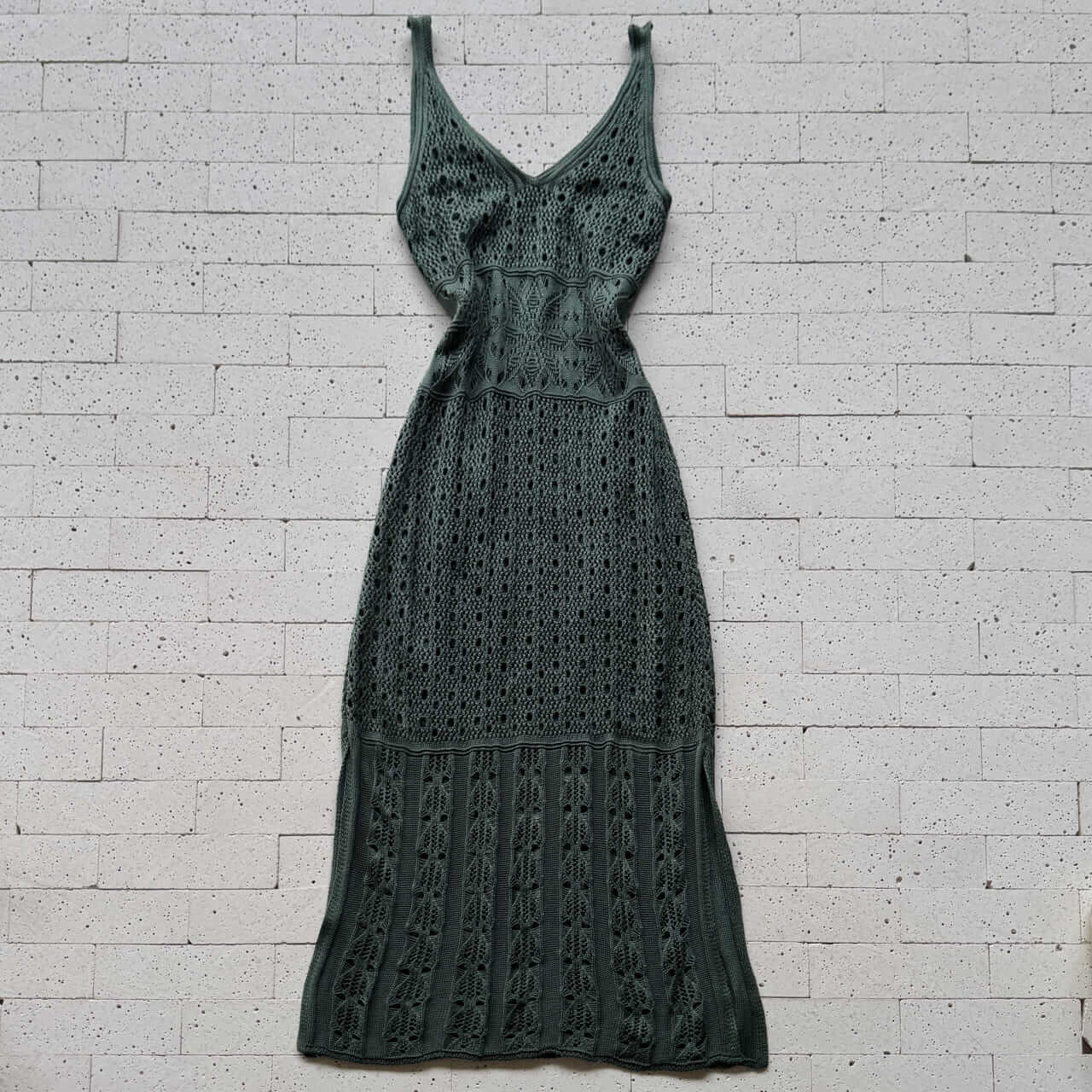 Dondoca_com_br Vestido Trico Midi Detalhado Com Fenda Verde