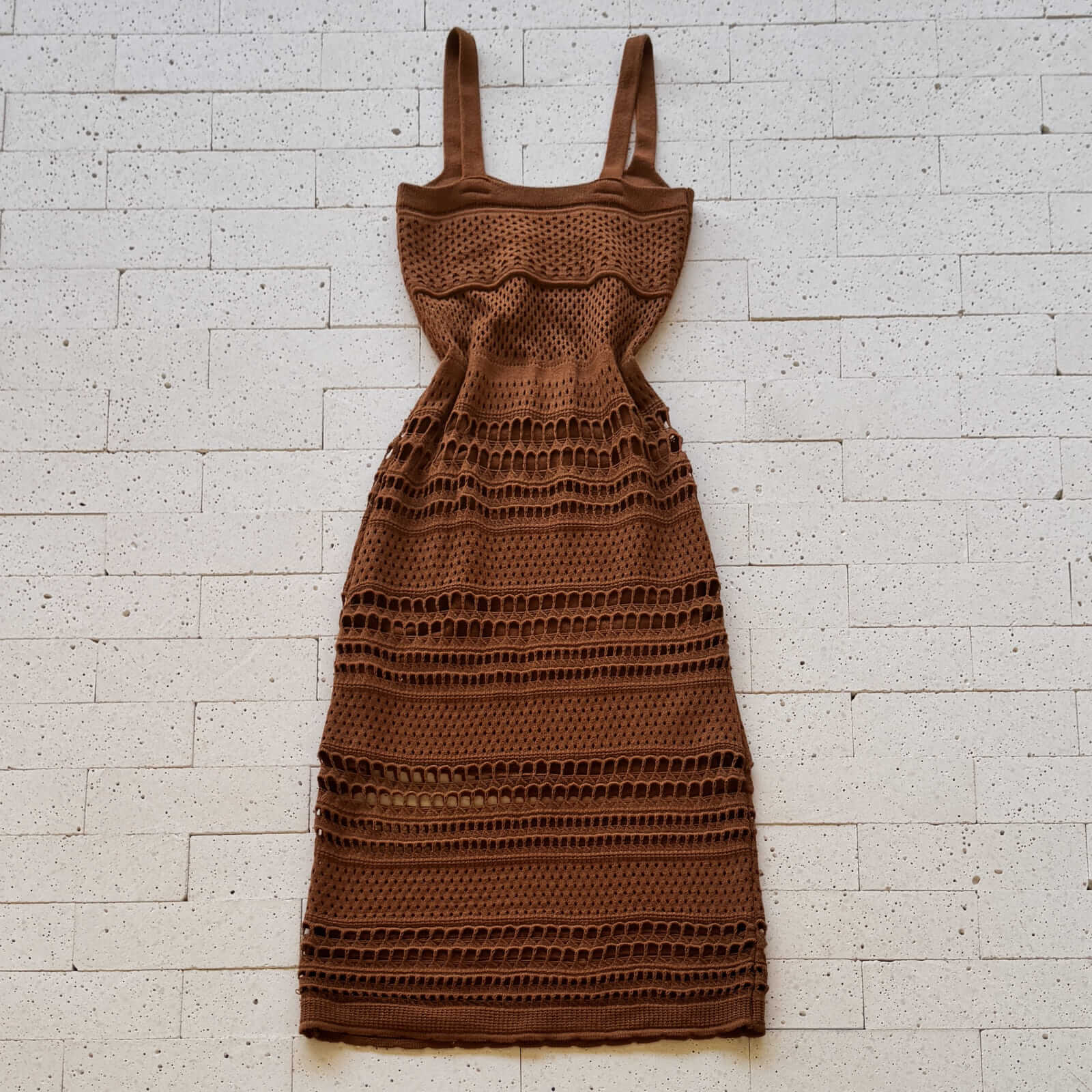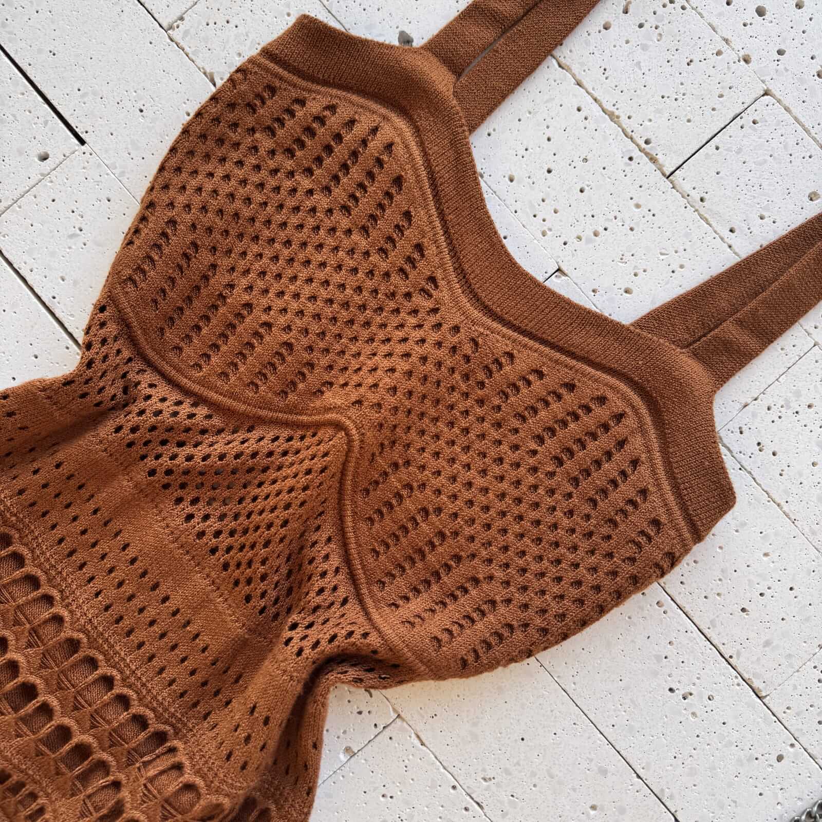 O Vestido Trico Midi Detalhado Marrom é a peça perfeita para quem deseja aliar elegância, charme e conforto absoluto. Produzido em tricô modal de alta qualidade, ele possui excelente elasticidade e se ajusta ao corpo com suavidade. Com alças largas fixas, o vestido valoriza o busto e garante sustentação. O design sofisticado traz trama detalhada em padrões vazados que criam uma textura única, acompanhada de forro curto para garantir discrição e leveza ao visual. Ideal para composições que vão do casual chic ao look de evento especial.