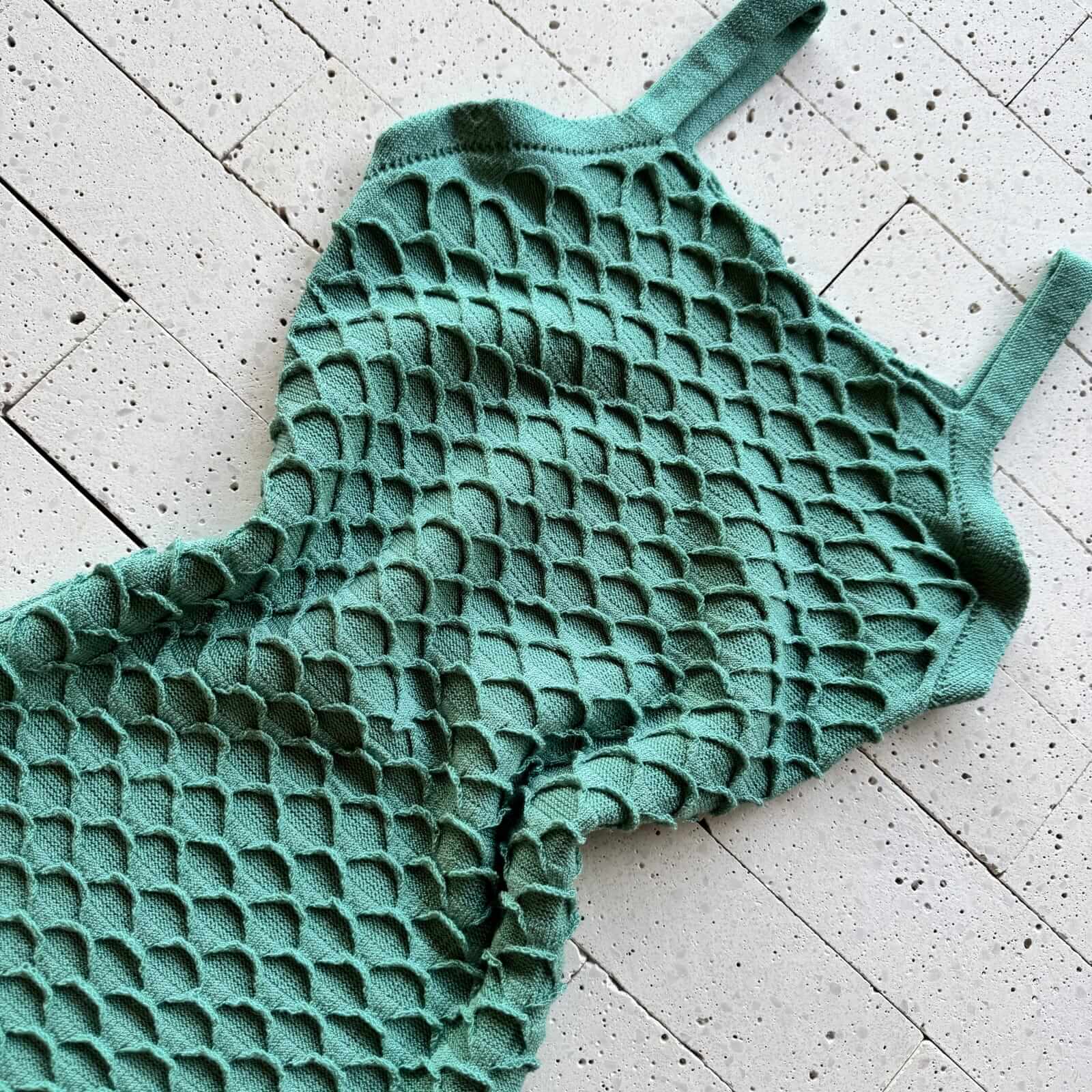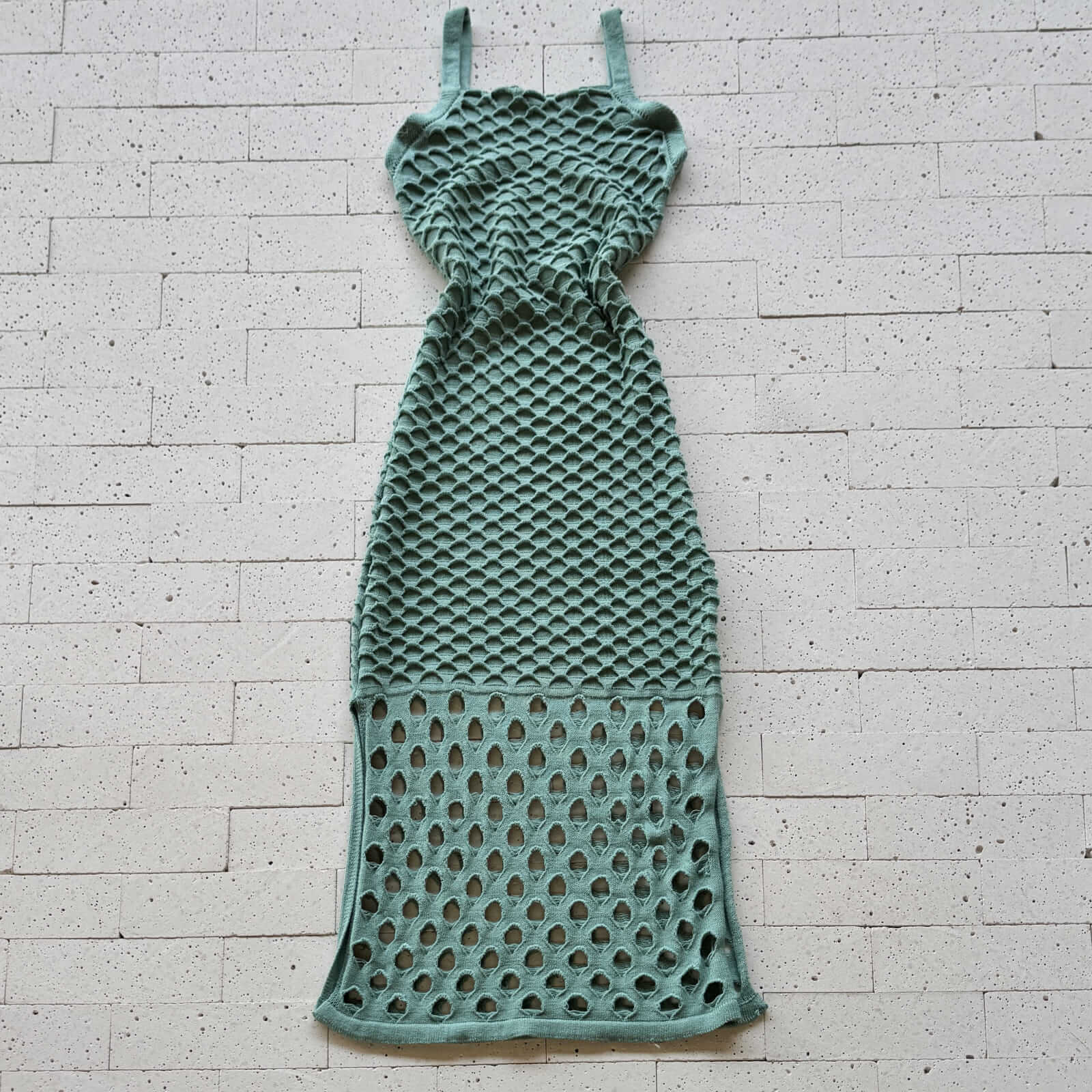 Vestido Trico Midi Trama Colmeia Pistache – Elegância com textura e estilo