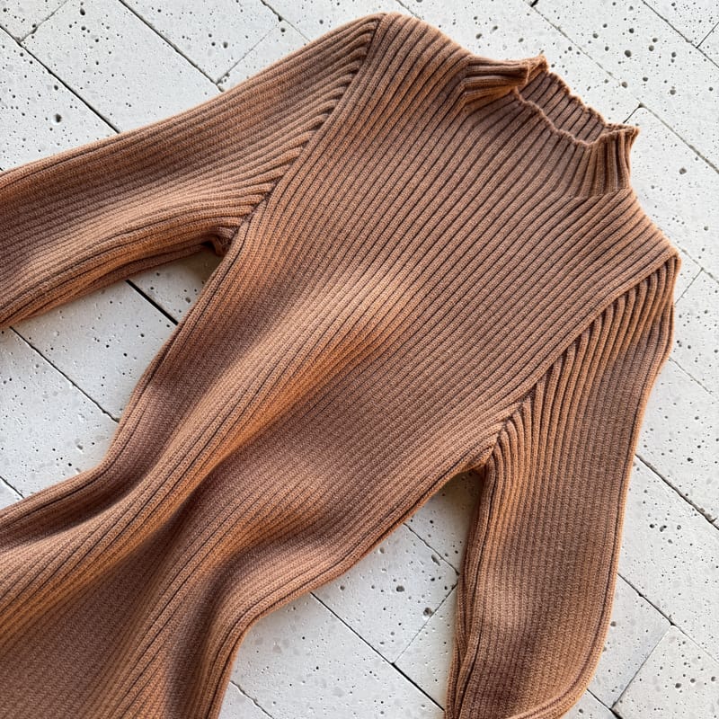 Como Usar o Vestido Tricô Modal Midi Canelado com Fenda Bege