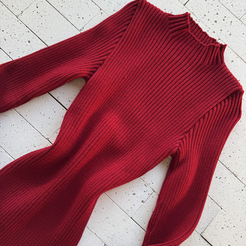 VESTIDO TRICÔ MODAL MIDI CANELADO COM FENDA MARSALA – Estilo & Aconchego Vibrante
