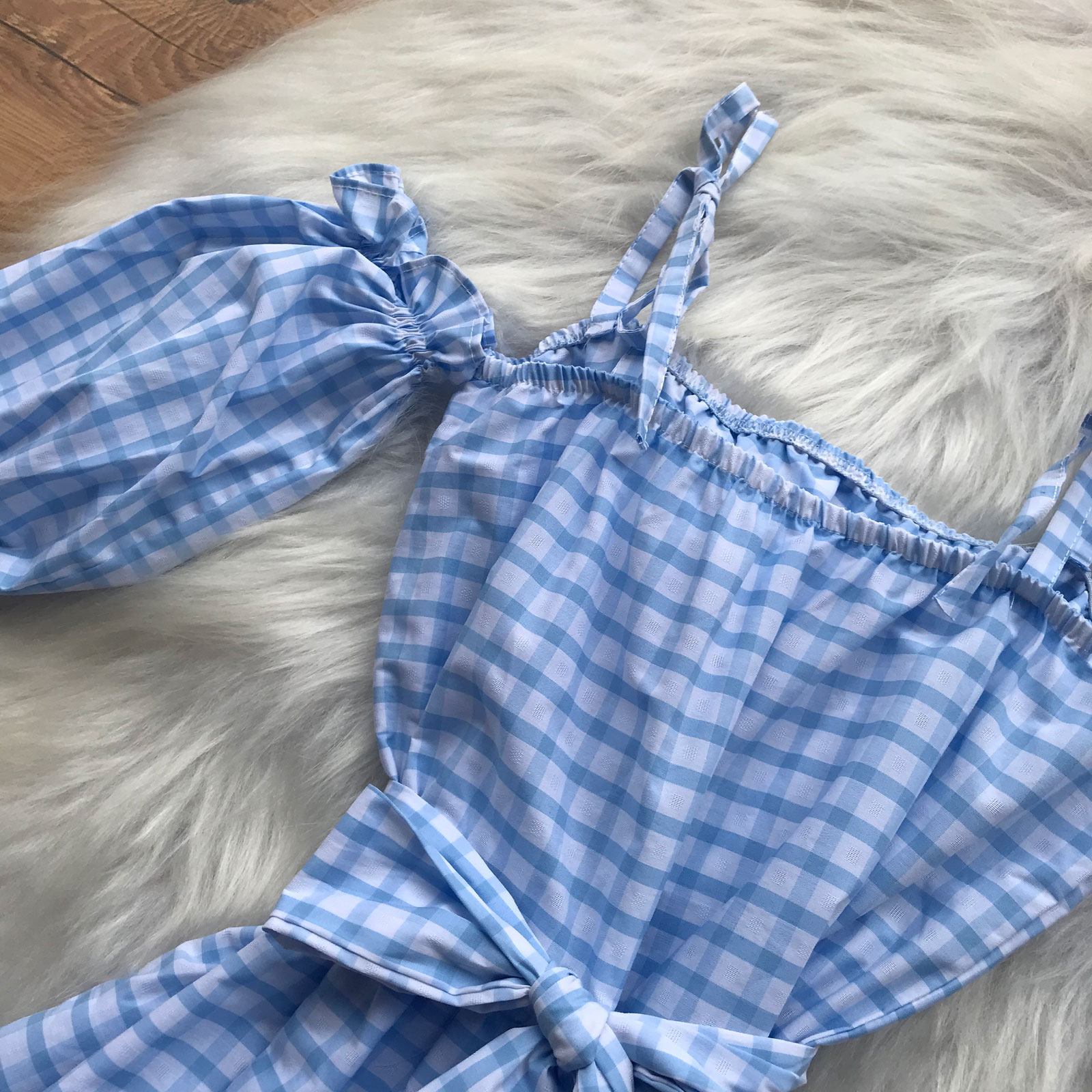 O que é estampa xadrez Vichy e como usar seu Vestido Xadrez Vichy Lacinho Na Alça Azul Bebê
